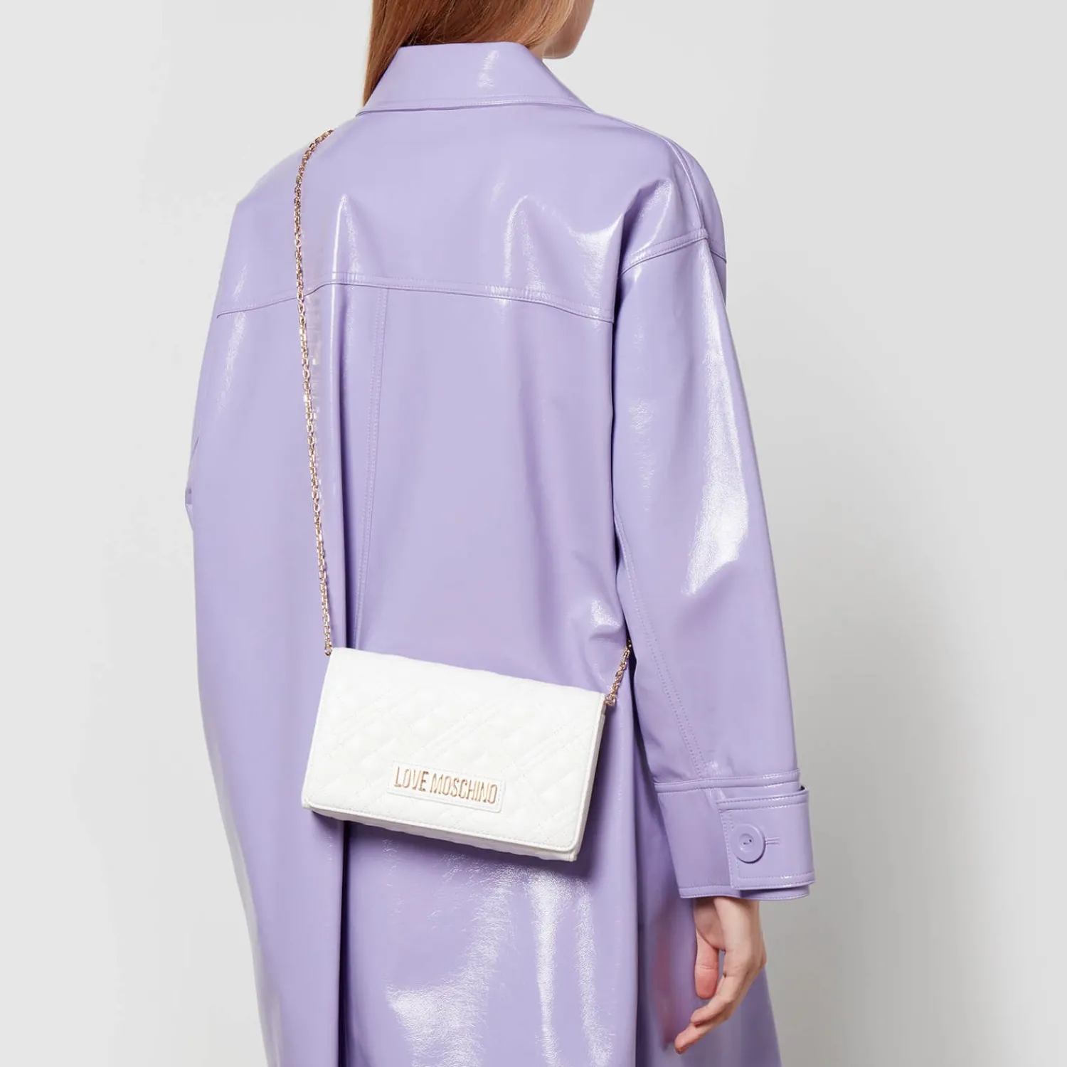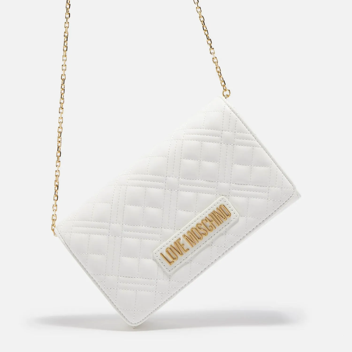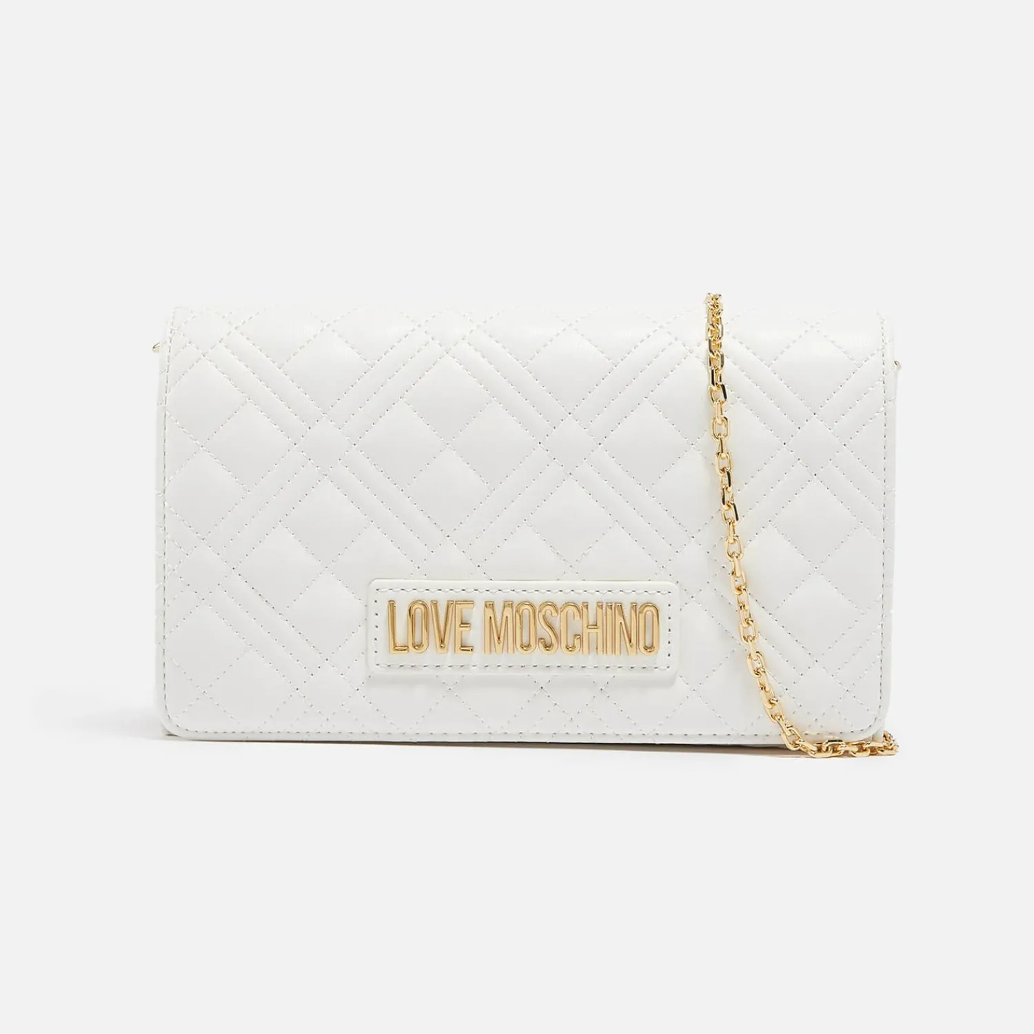 Love Moschino Borsa BagWhite Quilted Faux LeatherLogo PlaqueGold-Tone HardwareInternal CompartmentCard PocketMagnetic Sn…