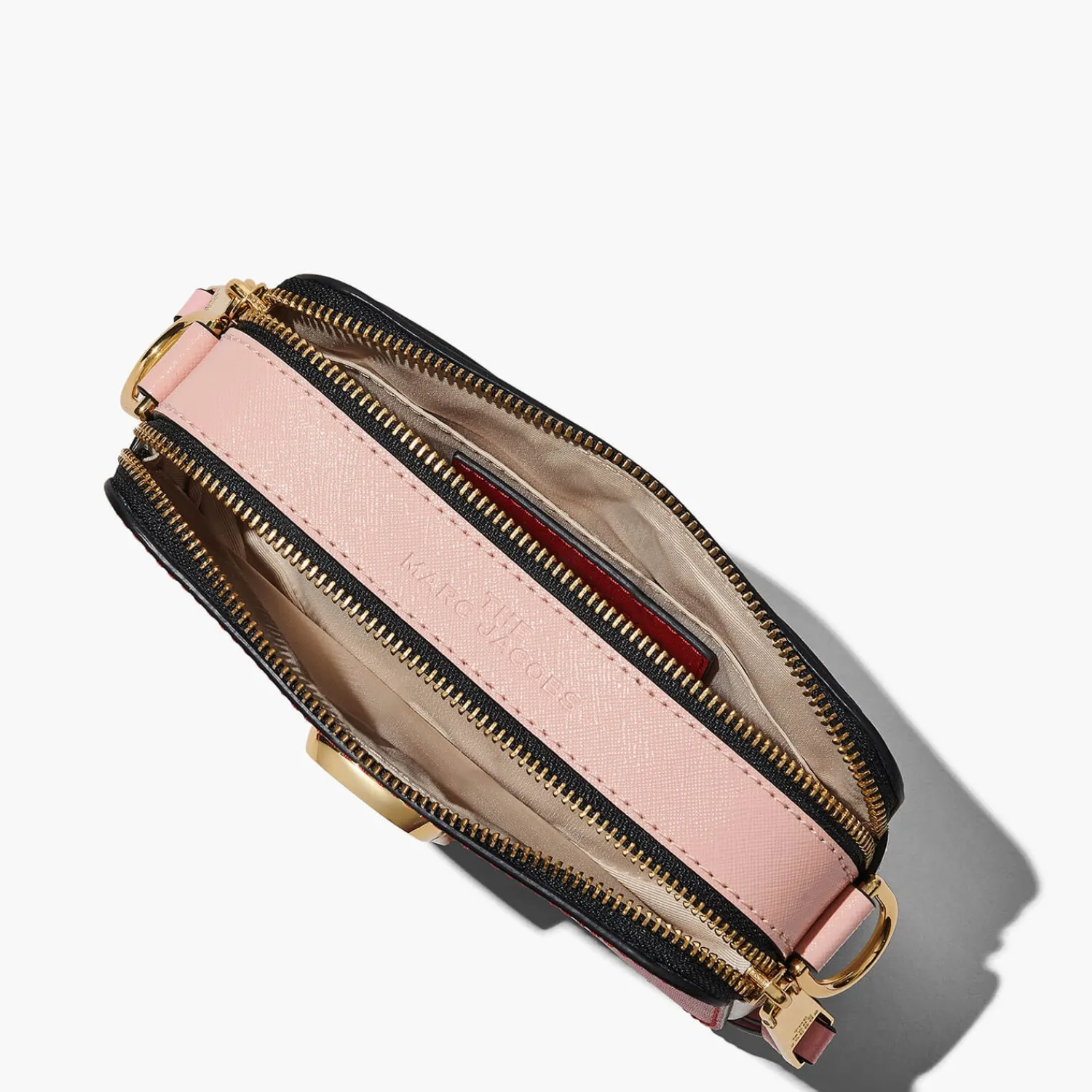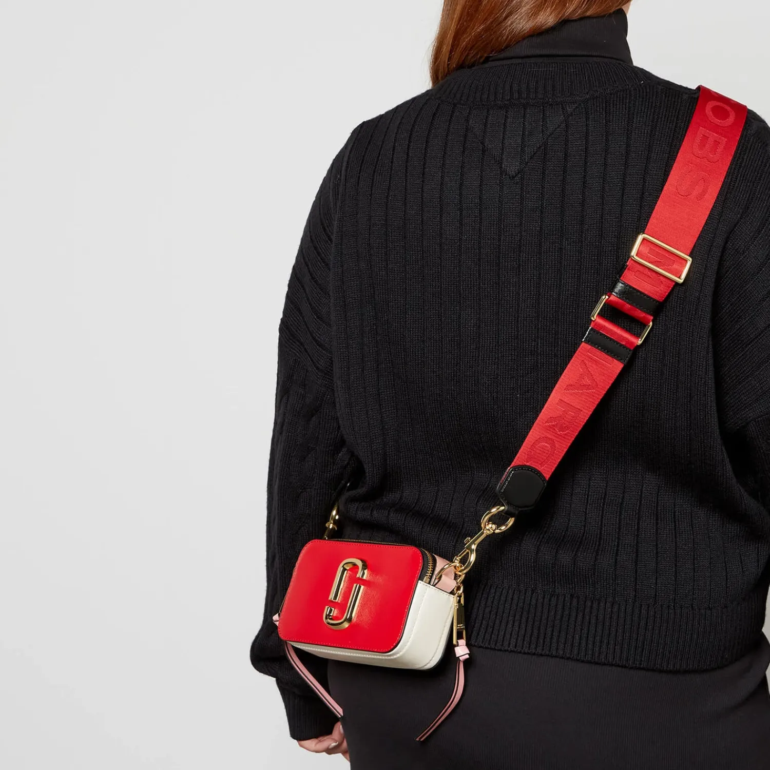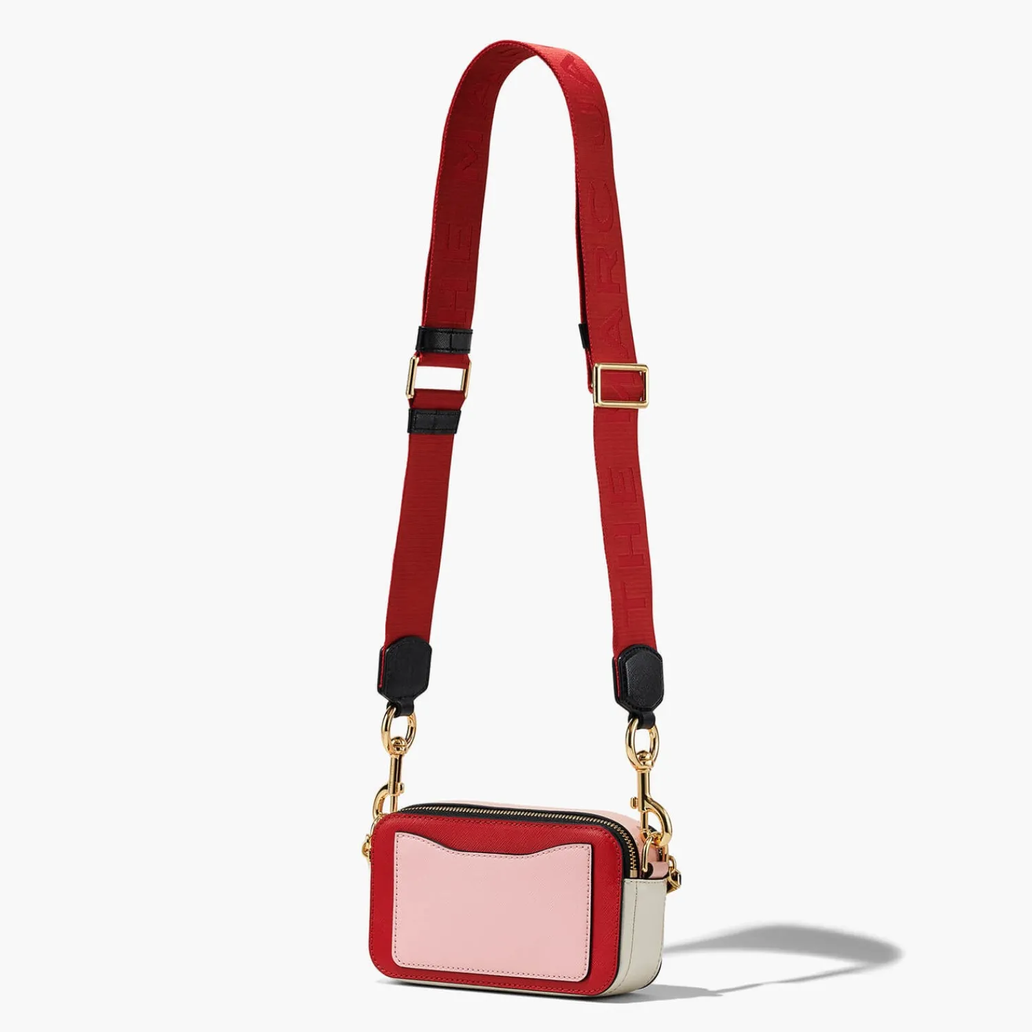 Marc Jacobs The Snapshot BagRedBlush And White LeatherAdjustable Detachable Webbing StrapDesigner PlaqueGold-Tone Hard…