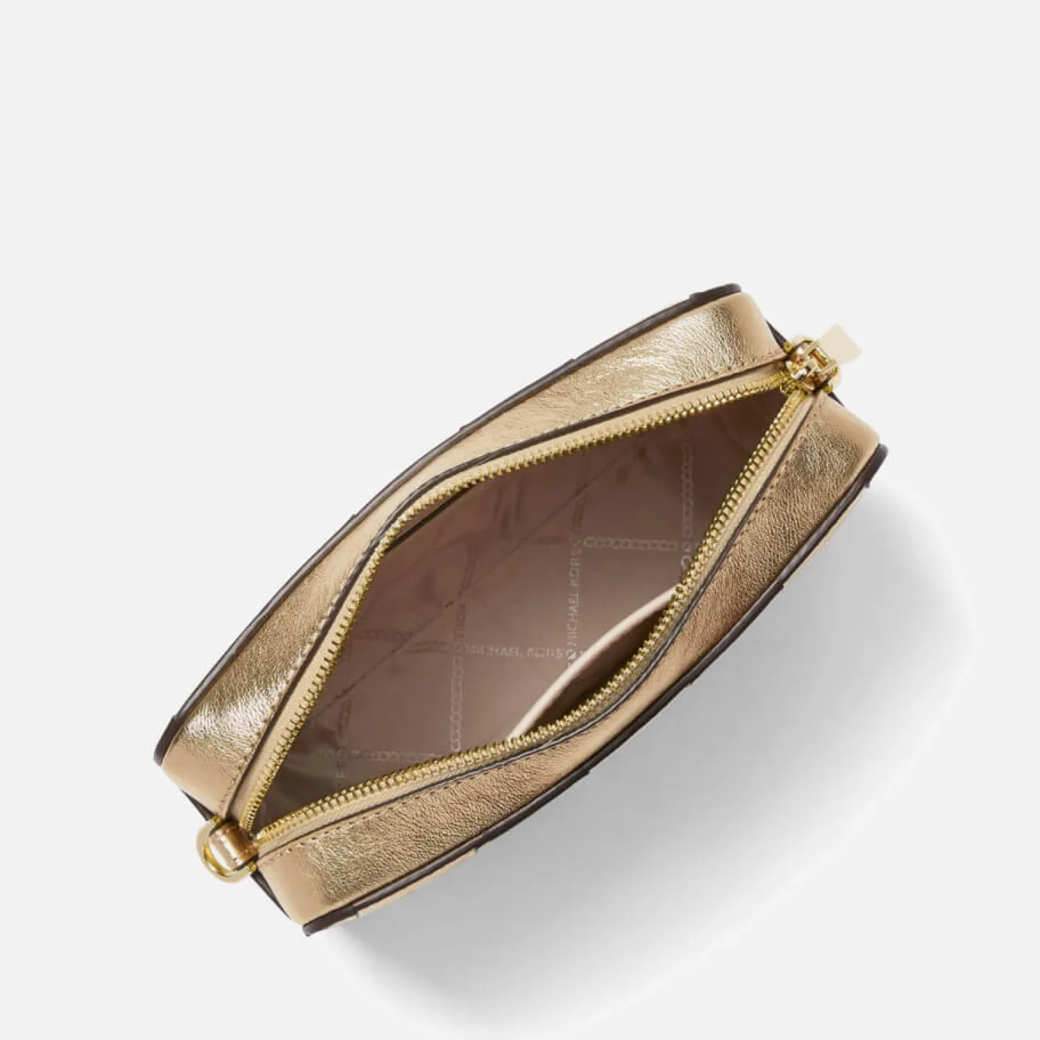 Michael Michael Kors Jet Set Medium Camera BagGold Woven LeatherDesigner PlaqueGold-Tone HardwareDetachable Shoulder Str…