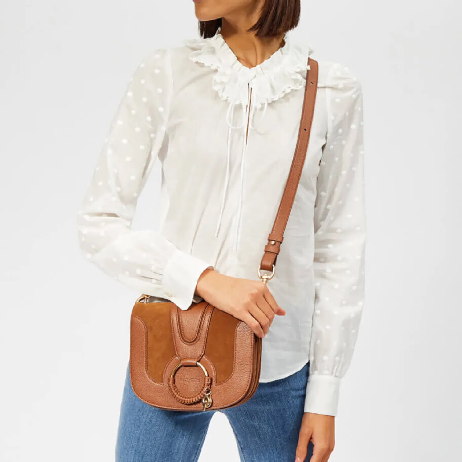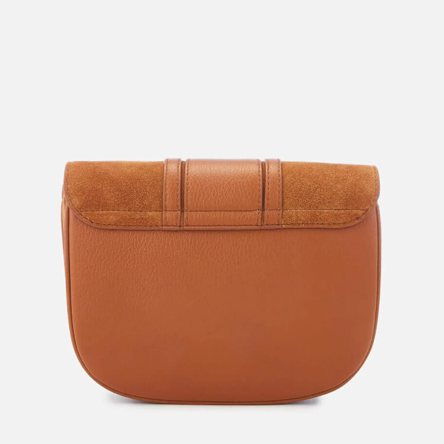 The ‘Hana’ Cross Body Bag From See By Chloe Is Crafted With Panels Of Pebbled Leather And Smooth Suede. The Brown Saddle Bag Opens With A Magnetic Flap To Reveal A Dual-Compartment Interior Lined With Canvas And Complete With A Slip Pocket. An Adjustable Detachable Shoulder Strap Offers Versatile Styling While The Signature Metal Ring With Key Charm Adds Detail. Finished With Embossed Branding.