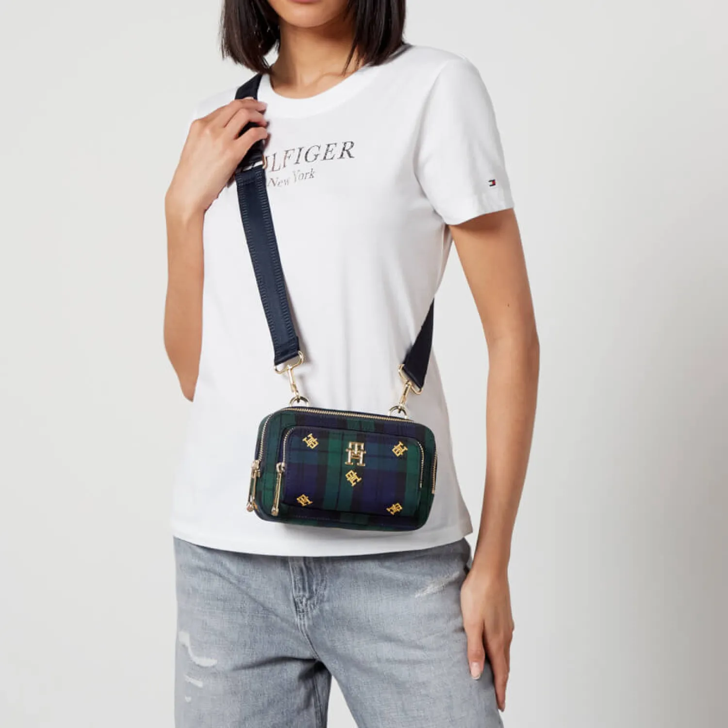 Tommy Hilfiger Iconic Tommy Camera BagNavy And Forest Green JacquardZip ClosureDesigner Colour: BlackwatchDimensions: H:…