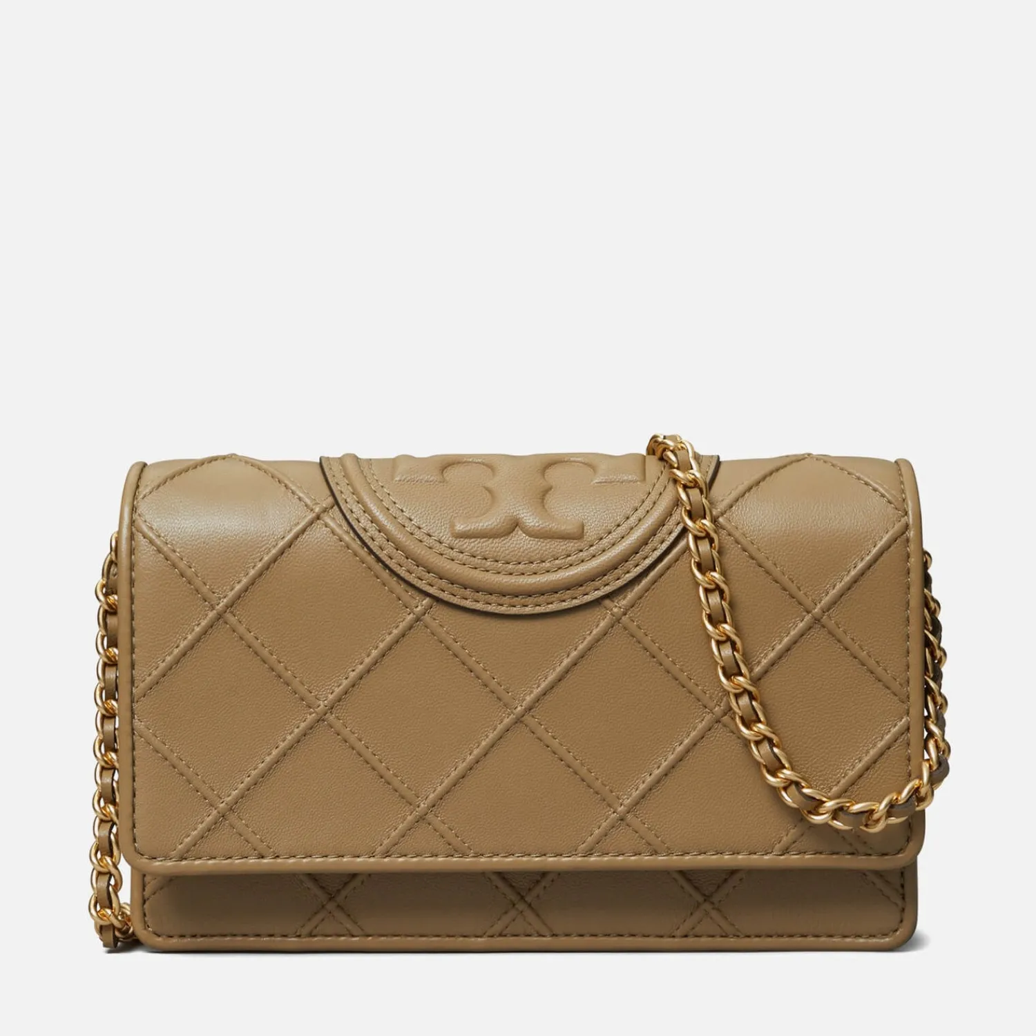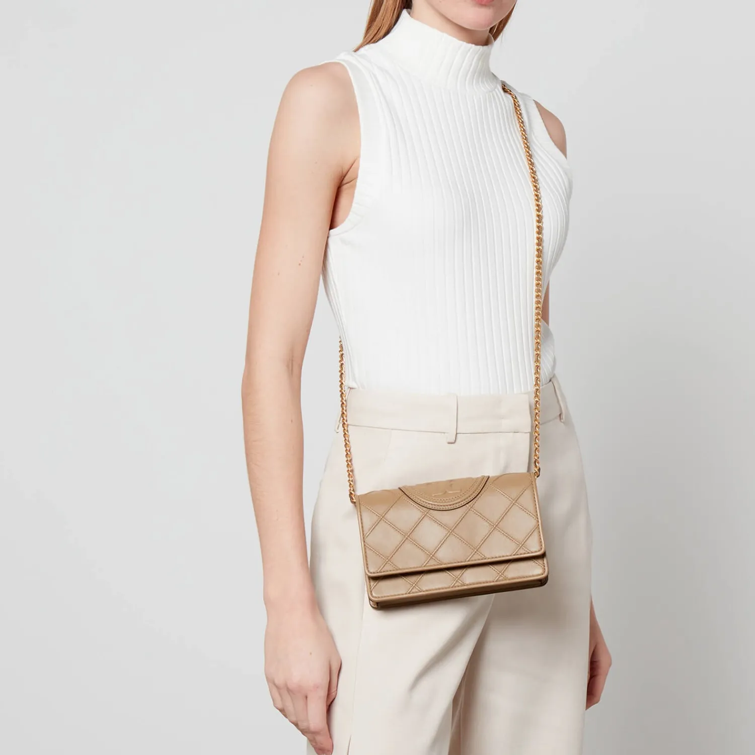 Tory Burch Fleming Cross-Body BagBeige LeatherChain StrapDesigner LogoGold-Tone HardwareFront Flap ClosureDesigner Colou…