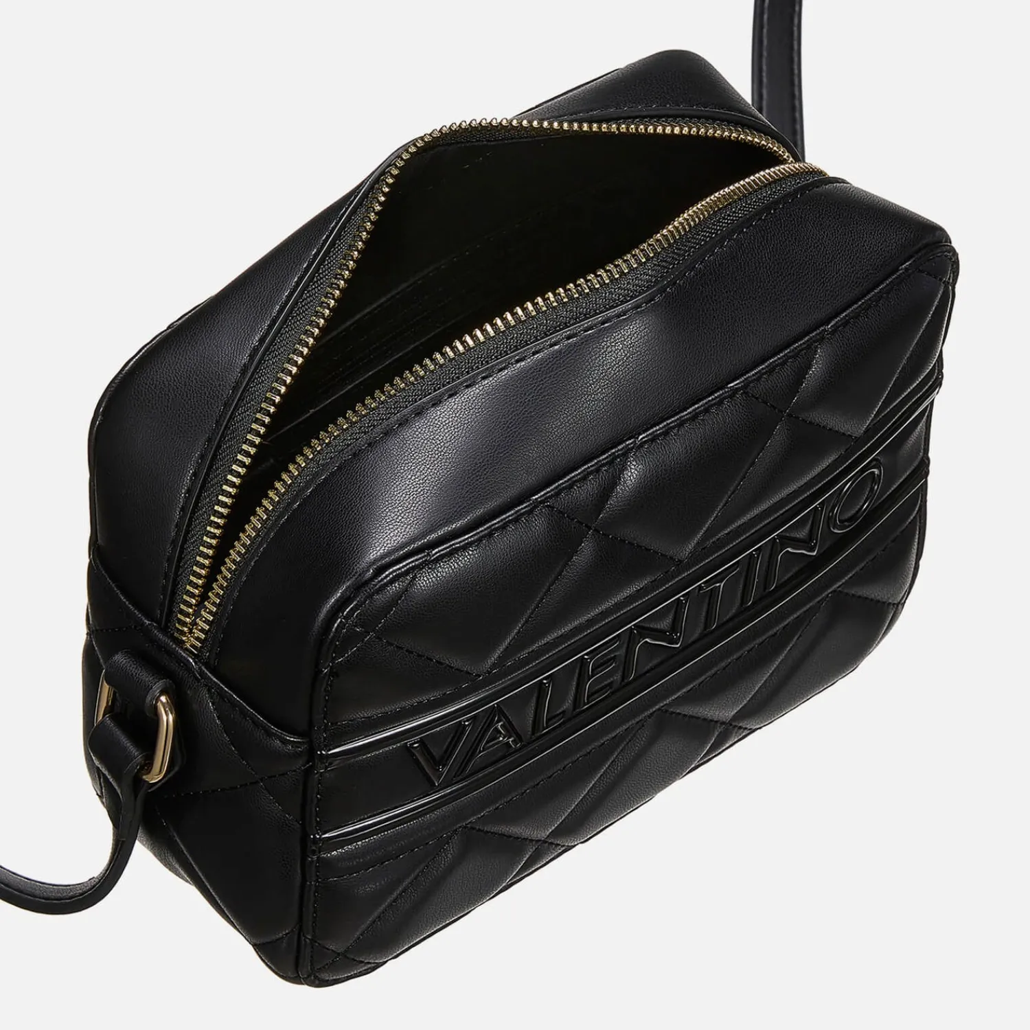Valentino Ada Camera BagBlack Smooth LeatherDesigner Debossed LogoAdjustable Shoulder StrapZip Closure