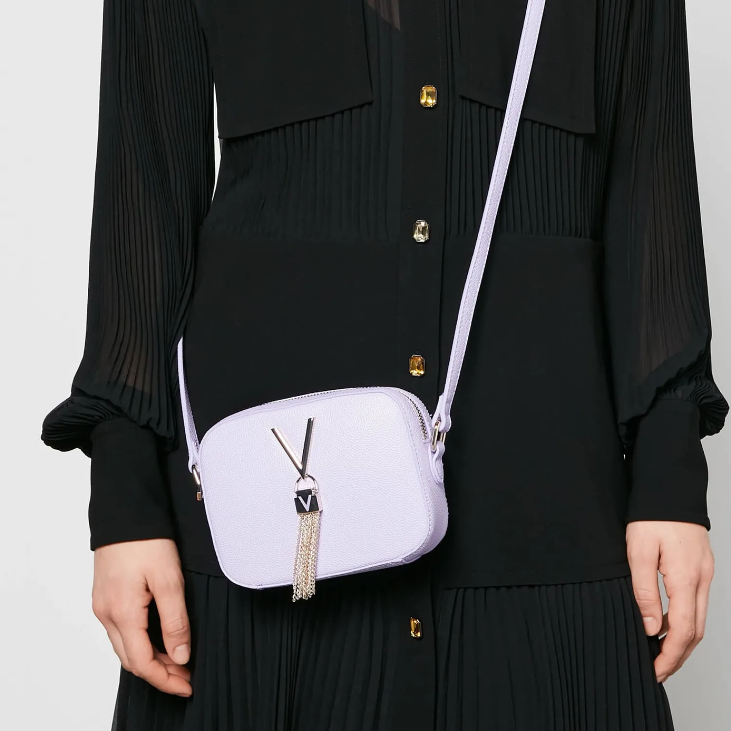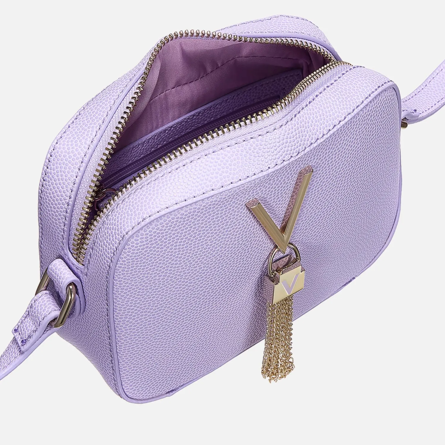Valentino Divina BagLilac Faux LeatherShoulder StrapDesigner LogoZip Closure