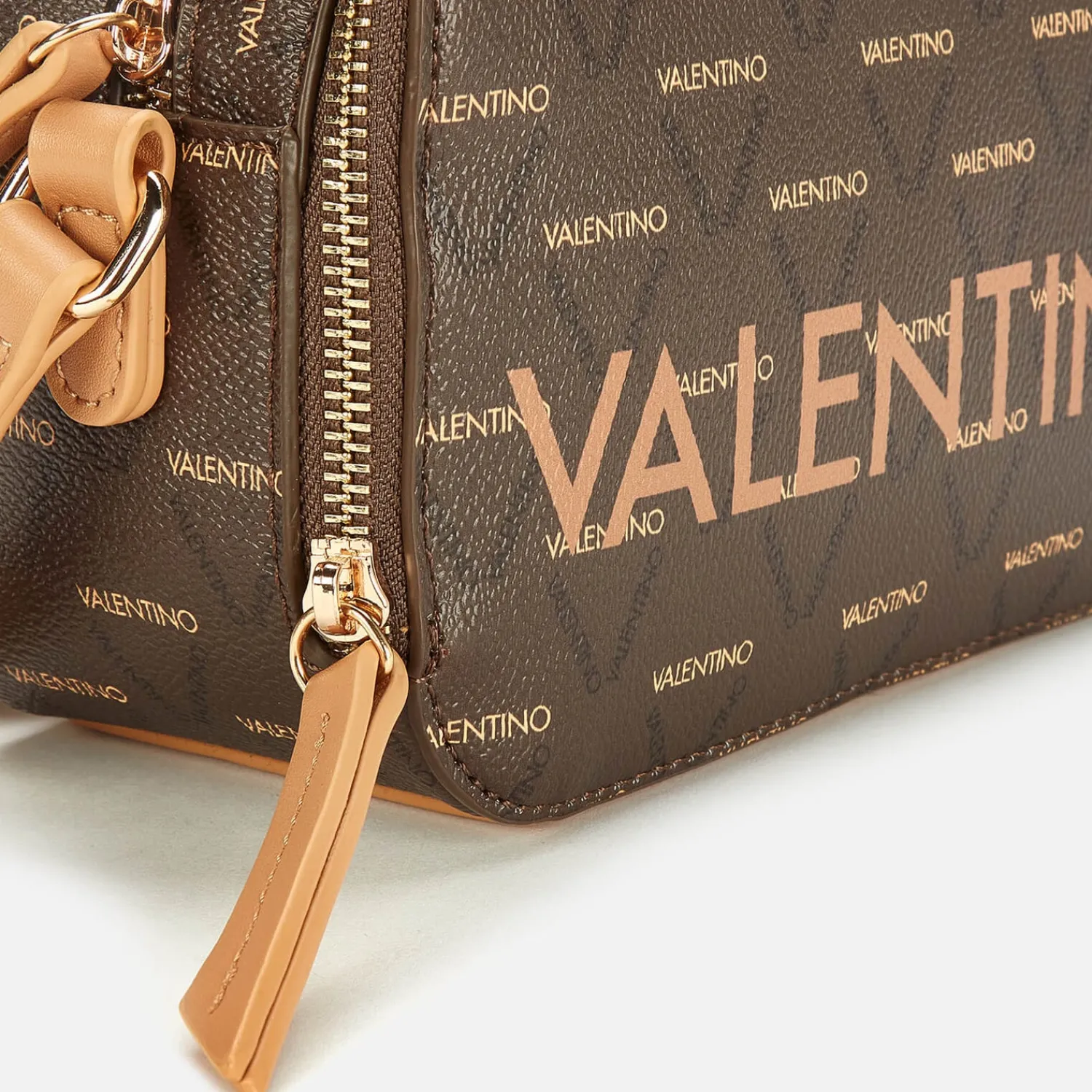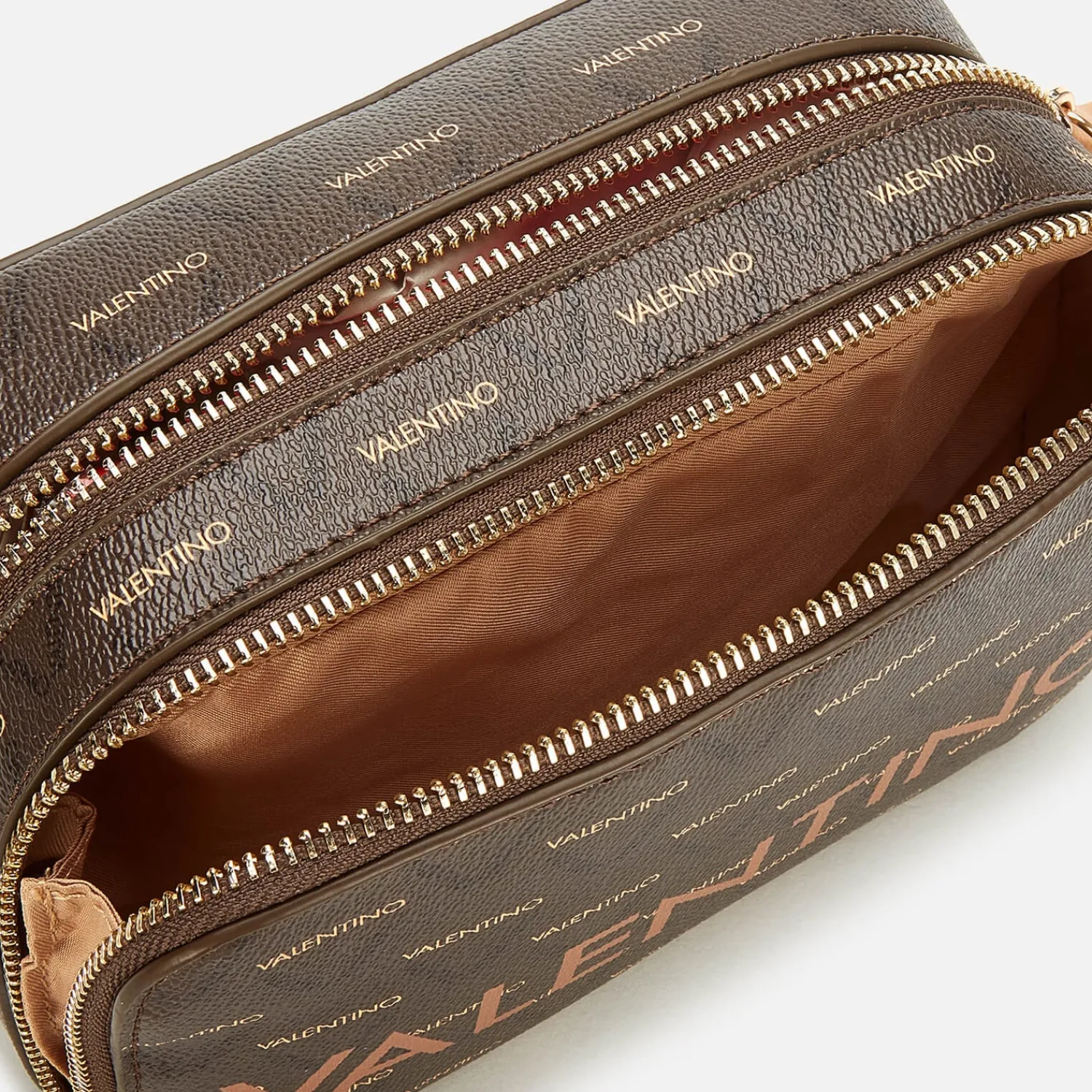 Valentino Bags’ Liuto Camera Bag Is Decorated With An All-Over Logo Print. Made From Brown And Tan Faux Leather With A Grainy Textured Finish The Compact Cross-Body Bag Has Dual Zip Compartments To Keep Your Daily Essentials Organised. It’S Finished With An Adjustable Strap For Cross-Body Or Over The Shoulder Wear.