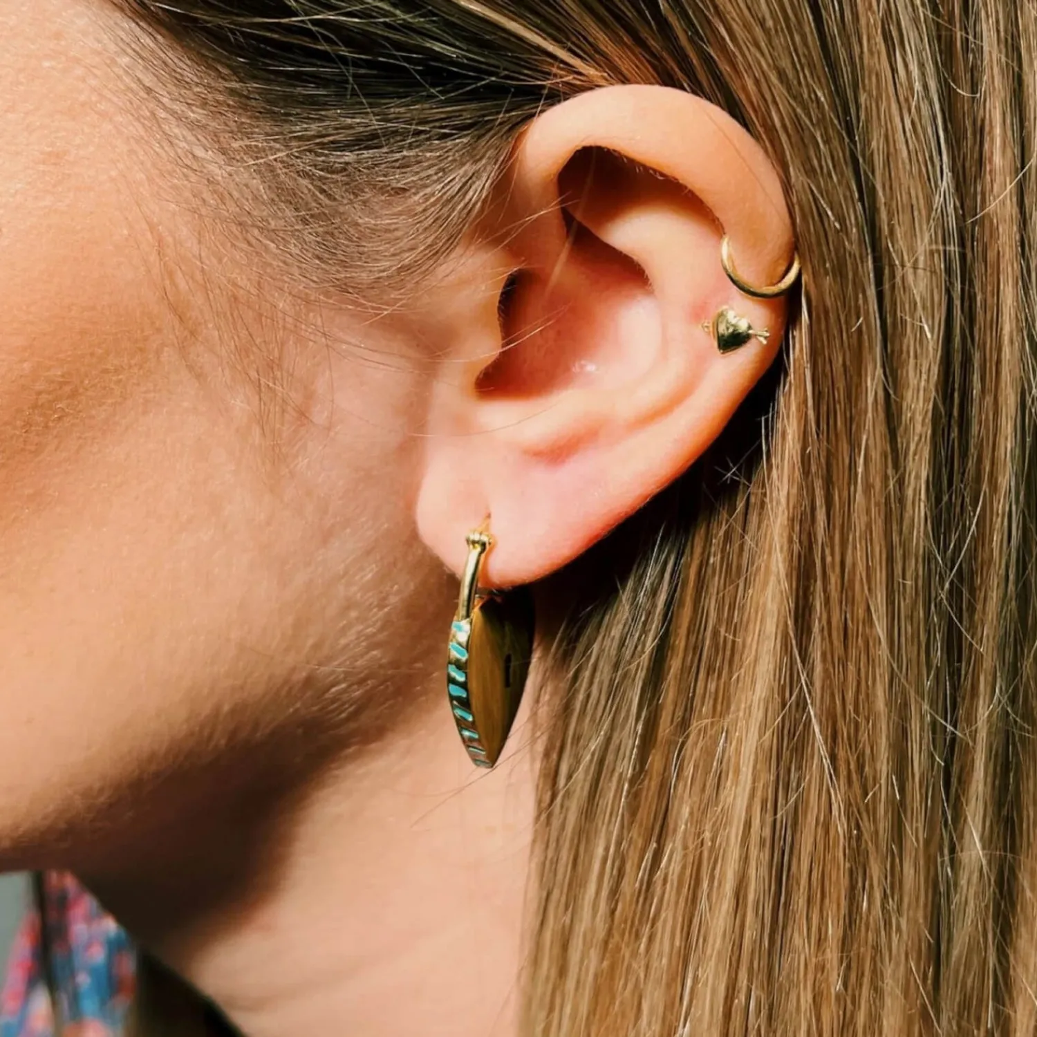 Anna + Nina Padlock Of Love Hoop EarringsGold-Plated BrassTurquoise And Dark Grey Enamel