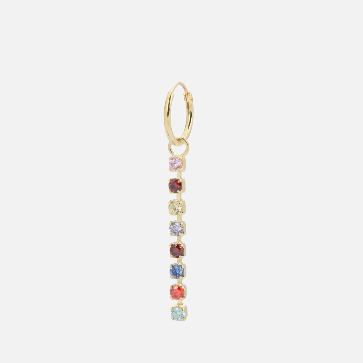 Anna De Lanoy And Nina Poot Launched Anna + Nina In 2015 With The Intention Of Bringing Light And Colour To Their Jewellery. Handmade From 14-Karat Gold-Plated Silver The Rainbow Rain Style Showcases A String Of Multicoloured Cubic Zirconia Crystals Cascading From The Lobe. As A Single Earring This Piece Lends Itself To Stacked Looks.