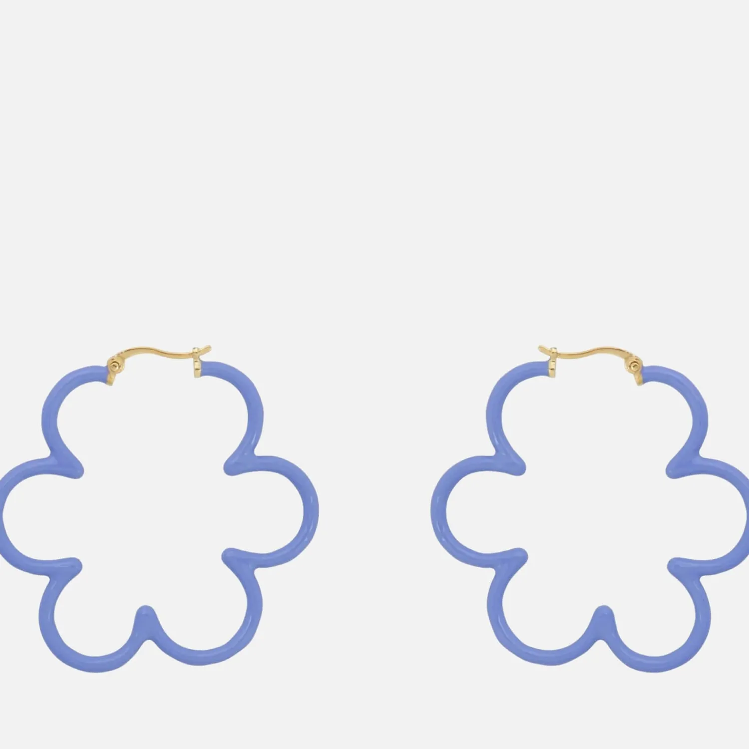 Anna + Nina’s Otherworldly Designs Include A Playful Jewellery Collection. The Wavy Hoop Earrings Are Moulded Into A Floral Design In Lavender Enamel With Gold-Tone Hook Fastenings.