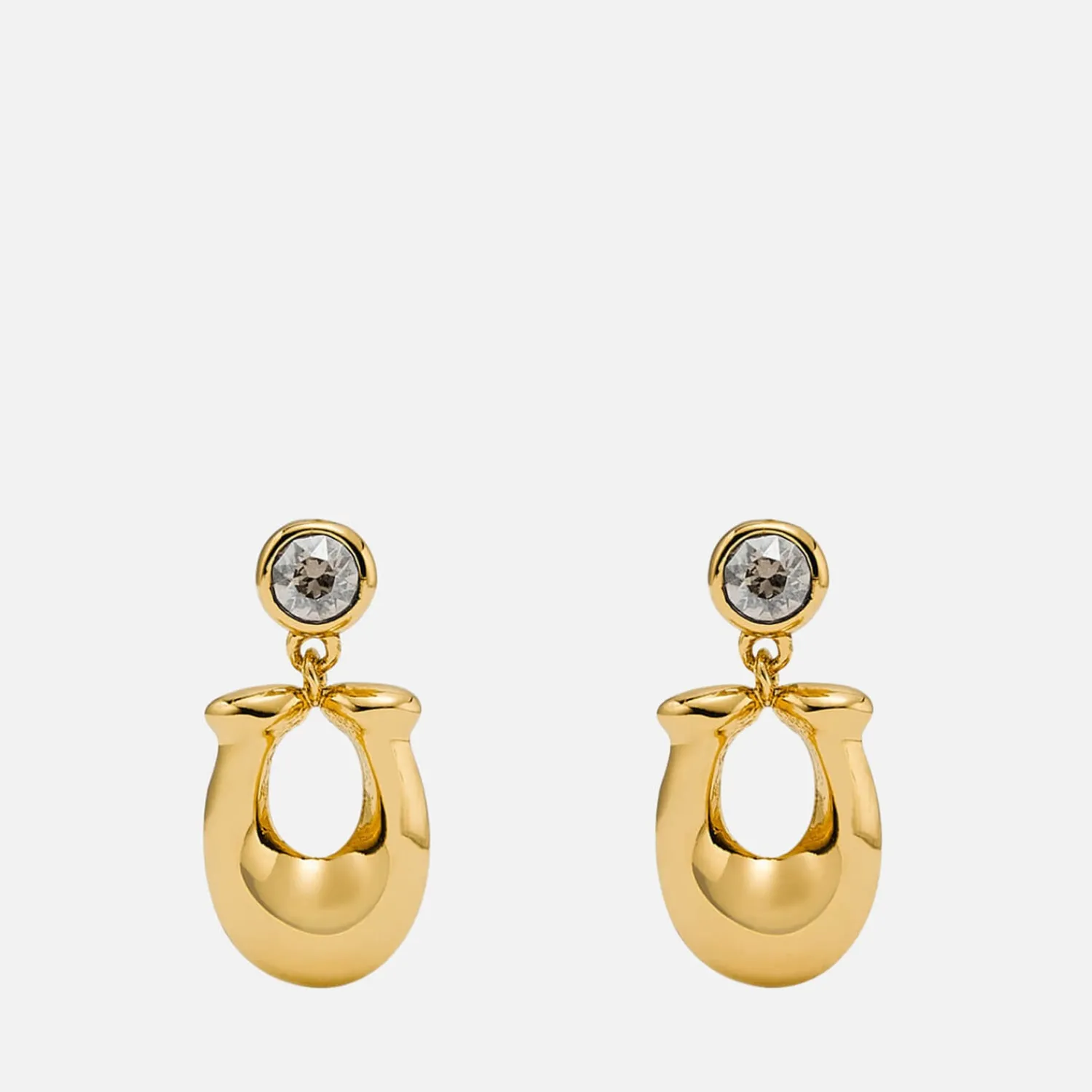 The C Motif On Coach’s Earrings Is Placed On Its Side To Mimic A Lucky Horseshoe. They’Re Cast From Gleaming Gold-Plated Brass And Topped With A Crystal For Extra Sparkle.