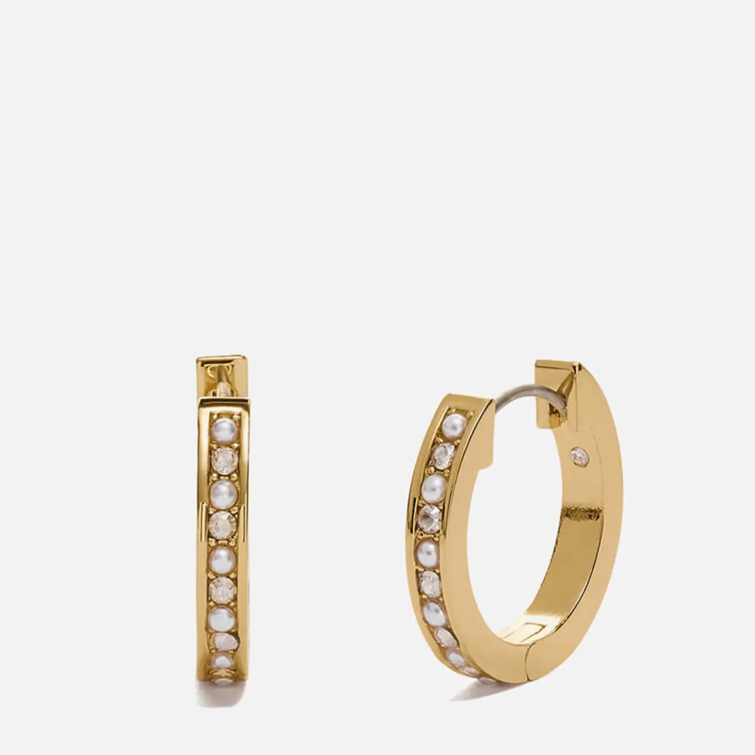 Elegant Style And Subtle Charm Is Artfully Captured In These Coach Earrings. A Classic Huggie Design These Small Hoops Fit Snugly Around The Earlobe Offering An Understated Yet Opulent Touch To The Everyday. Adorned With Crystal Pearls And Shimmering Gemstones These Will Complement Any Look.