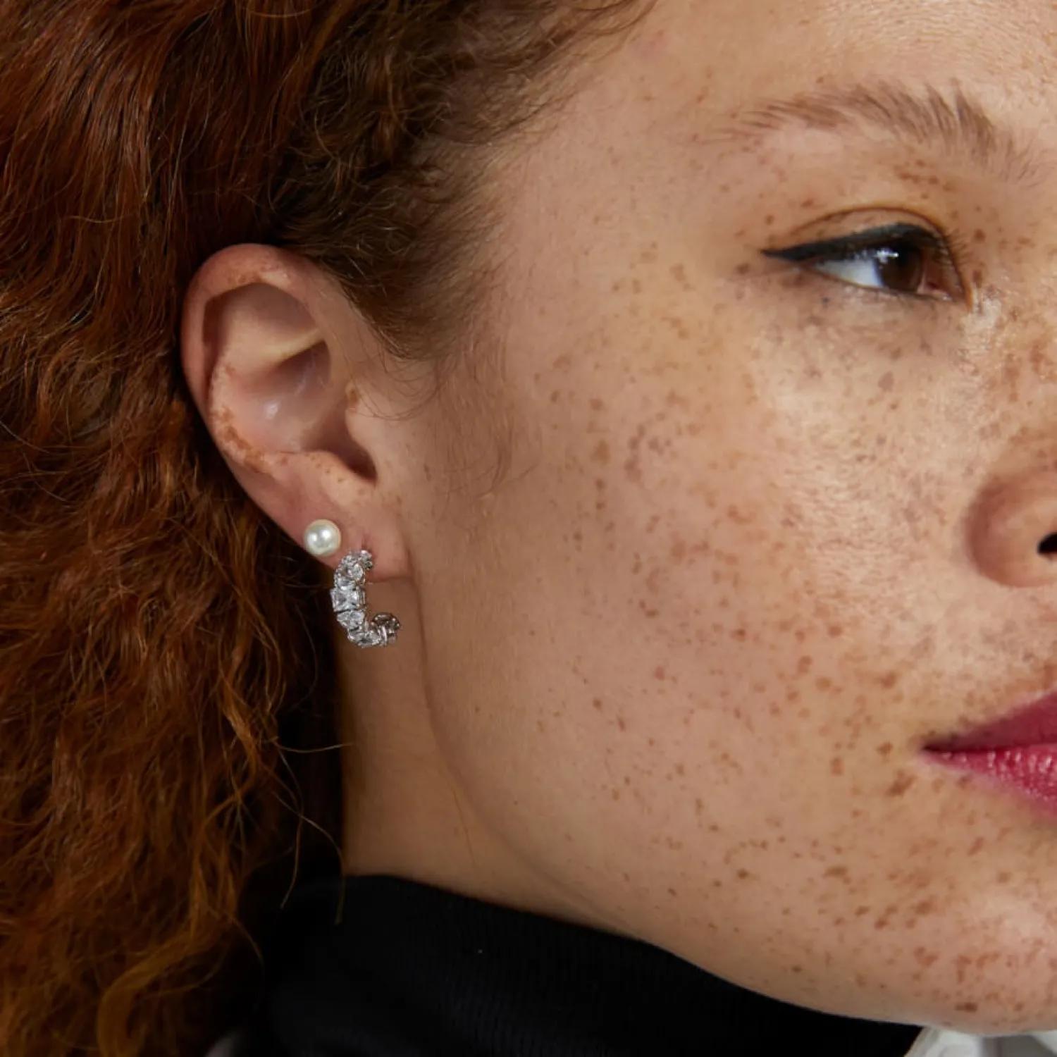 - Silver-Plated Metal Cubic Zirconia Glass Pearl Titanium Posts