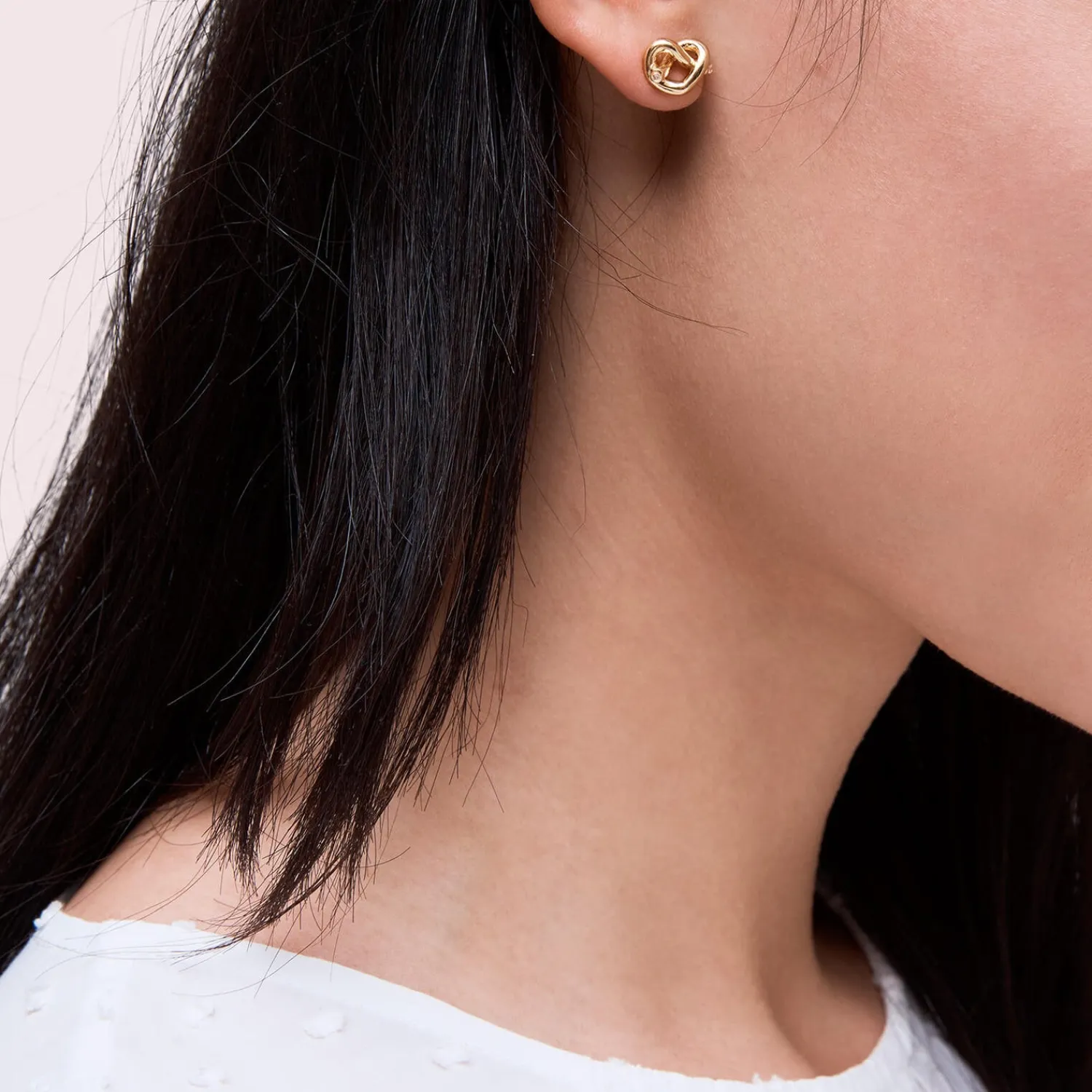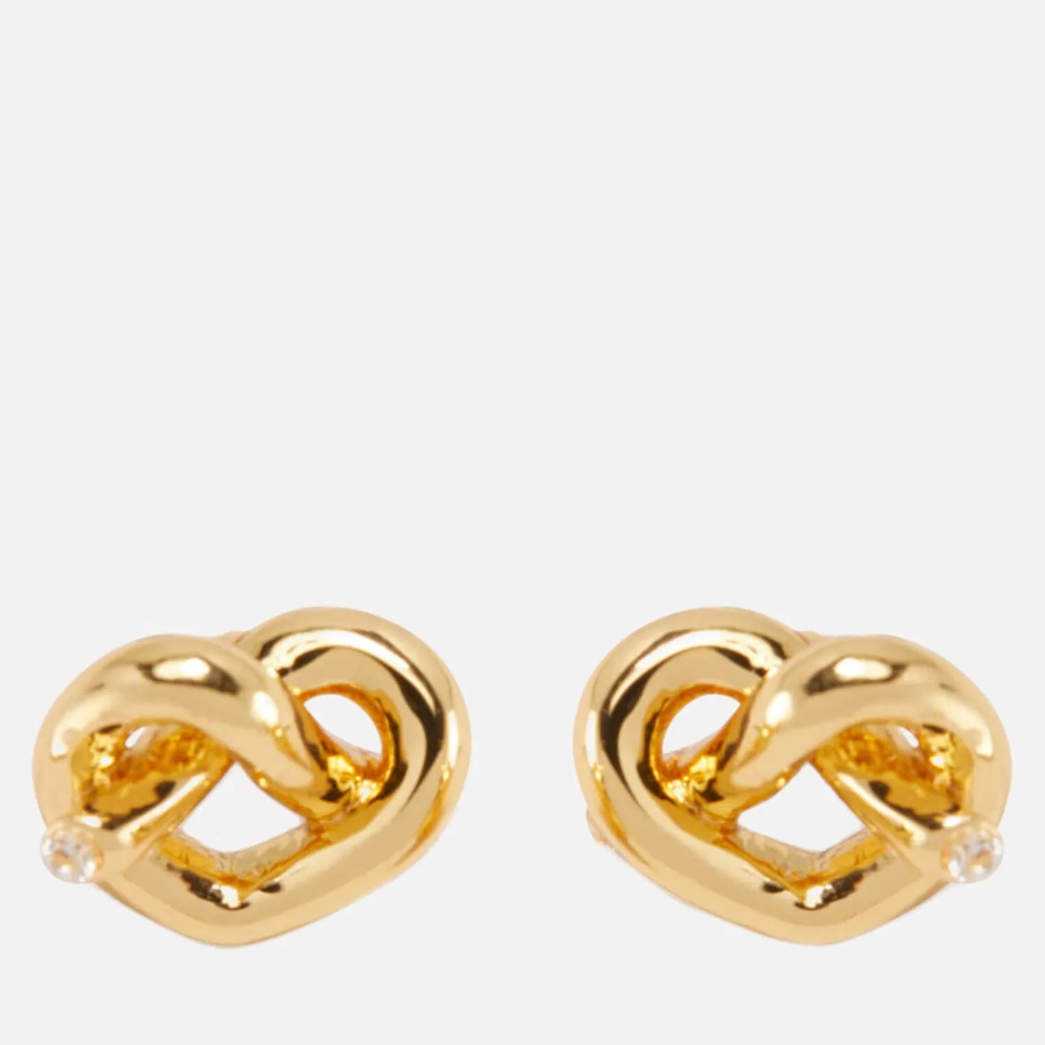Kate Spade New York Has Updated Its Best-Selling Sailor Knot With A Love Me Knot Design. The Knotted Pendant Is A Subtle Heart-Shape And Handcrafted From Gold-Plated Brass. Signature Spade-Shaped Backs And Sparkling Cubic Zirconia Crystals Add The Finishing Touches.