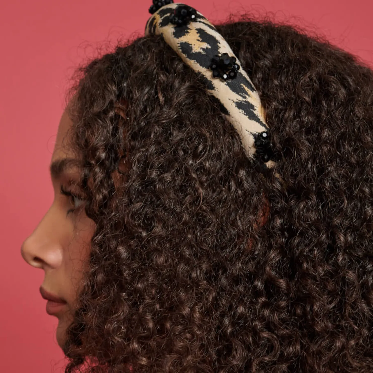 Sister Jane Hallie HeadbandBlack And Tan Leopard-Jacquard100% PolyesterBead EmbellishmentsSpot Clean