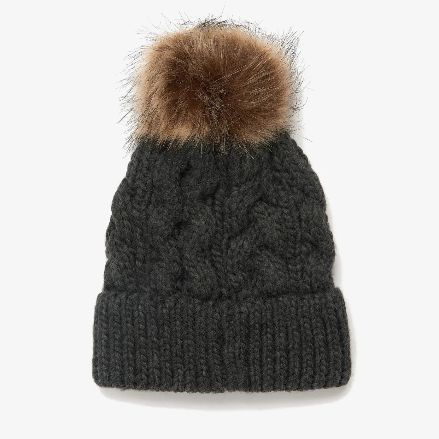Barbour’s Penshaw Beanie Spun In A Classic Cable-Knit Pattern For A Snug Fit. Logo-Embossed Leather Patch At The Folded Cuff And Fluffy Pompom.