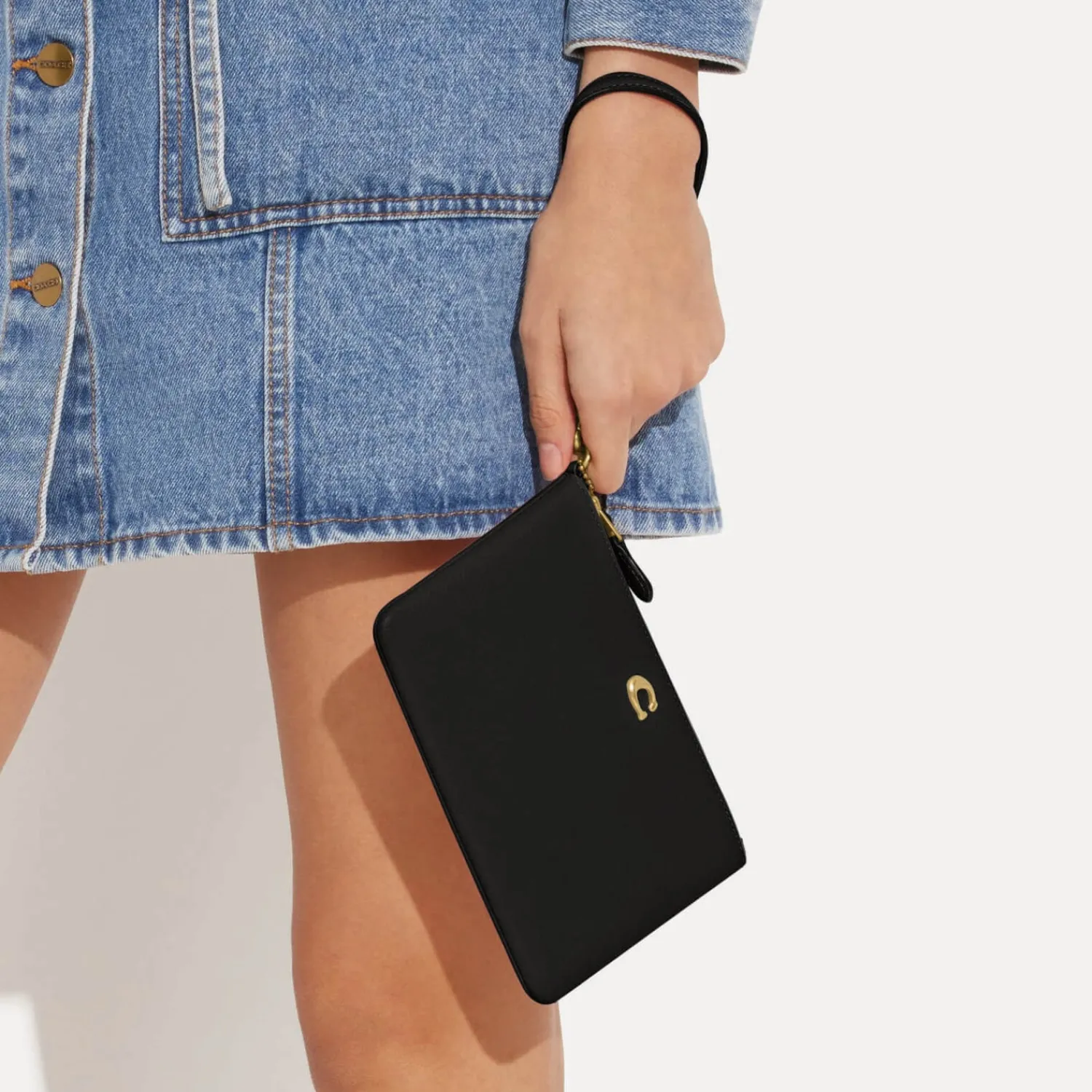 Crafted From Polished Pebble Leather And Cut To A Sleek Slip-On Profile The Coach Wristlet Is Perfectly Sized To House Your Small Daily Essentials Such As Your Card And Phone. Detailed With Signature Hardware The Purse Can Be Worn On Your Wrist Or Clipped Inside A Larger Bag.