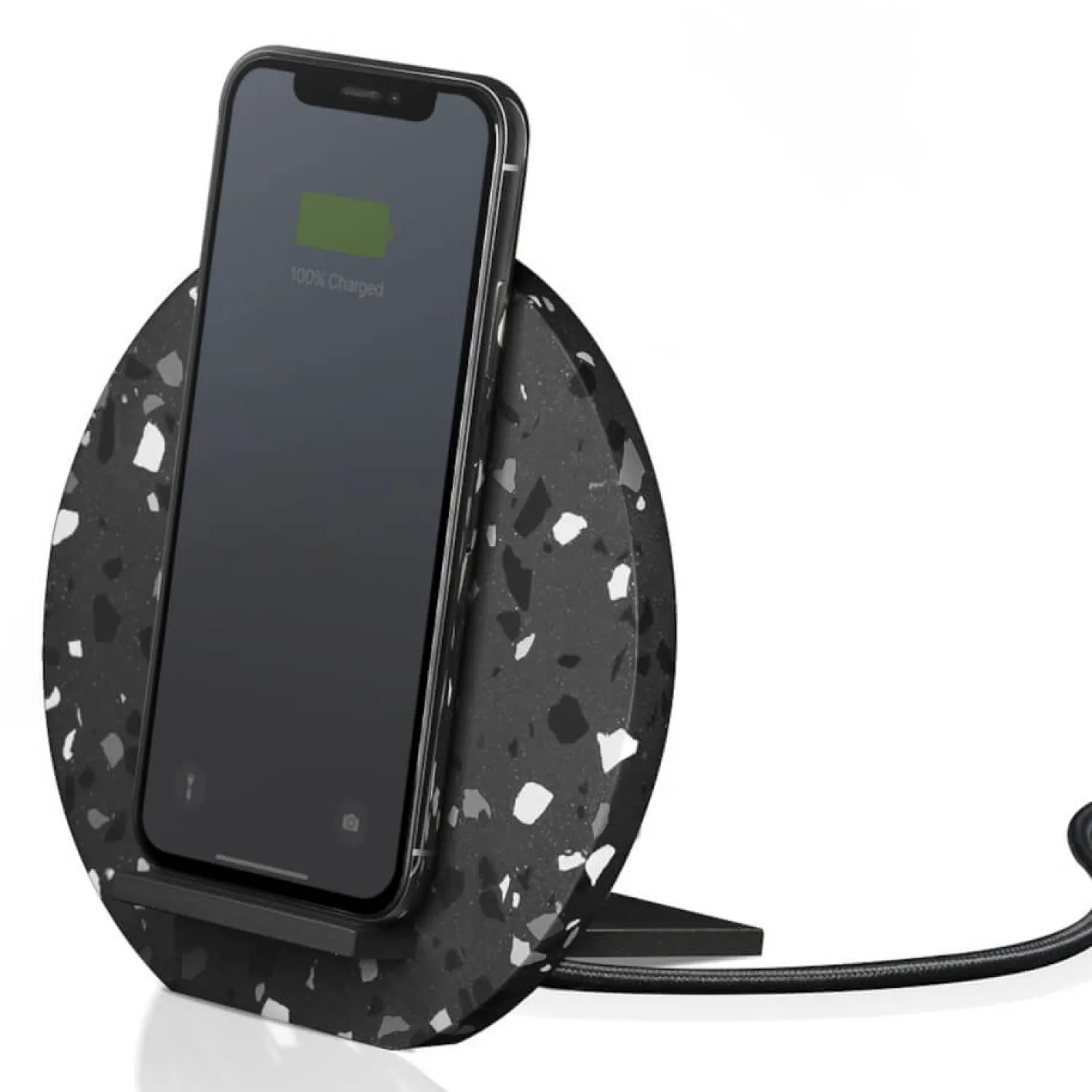 Dock Wireless Charger Terrazzo Edition Ensures Fast And Safe Charging For Iphone 8 Iphone 8 Plus Iphone X Iphone Xs Iphone Xs Max Iphone Xr And All Other Qi Compatible Devices Up To 10W. Handcrafted From Jesmonite This One-Of-A-Kind Wireless Charger Curates The Feel Of Any Home Or Workspace While Giving You Full Access To Your Device In Both Portrait And Landscape Orientation.
