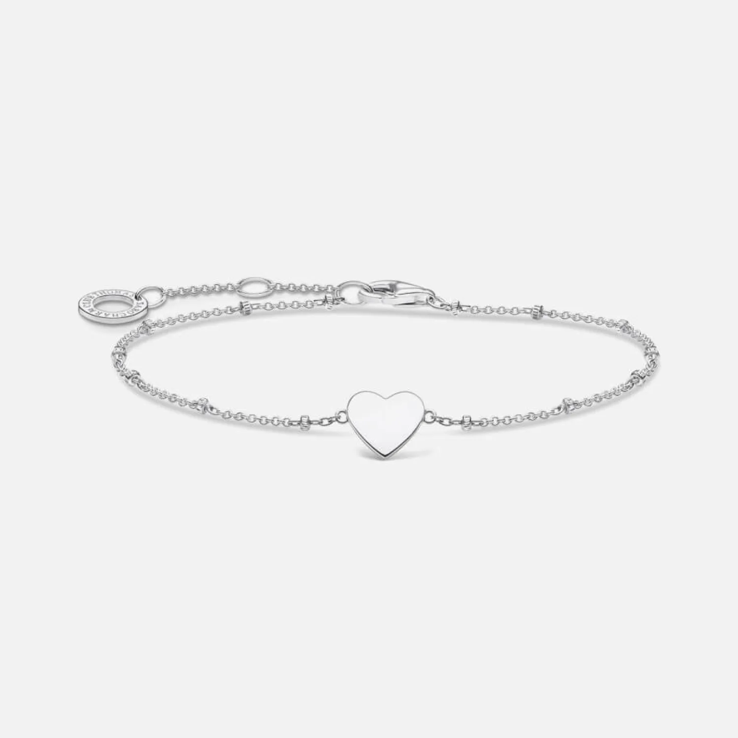 Thomas Sabo’s Sterling Silver Bracelet Features A Heart-Shaped Charm And Beaded Detail On The Delicate Chain. A Lobster Clasp And Adjuster Chain Enable You To Customise The Length. It’s Finished With A Logo Engraved Ring On The End Of The Adjuster Chain.