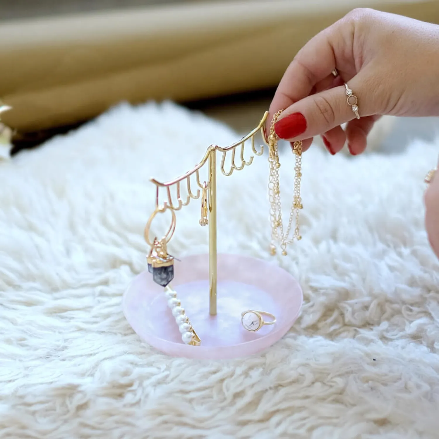 Keep Your Favourite Jewellery On Display With This Cute Pink Quartz And Rose Gold ‘Eyelash’ Jewellery Stand. Featuring 10 Hooks Perfect For Holding Rings Necklaces Or Bracelets And Additional Storage On The Base For Stud Earrings Or Any Other Small Accessories That Need A Home.
