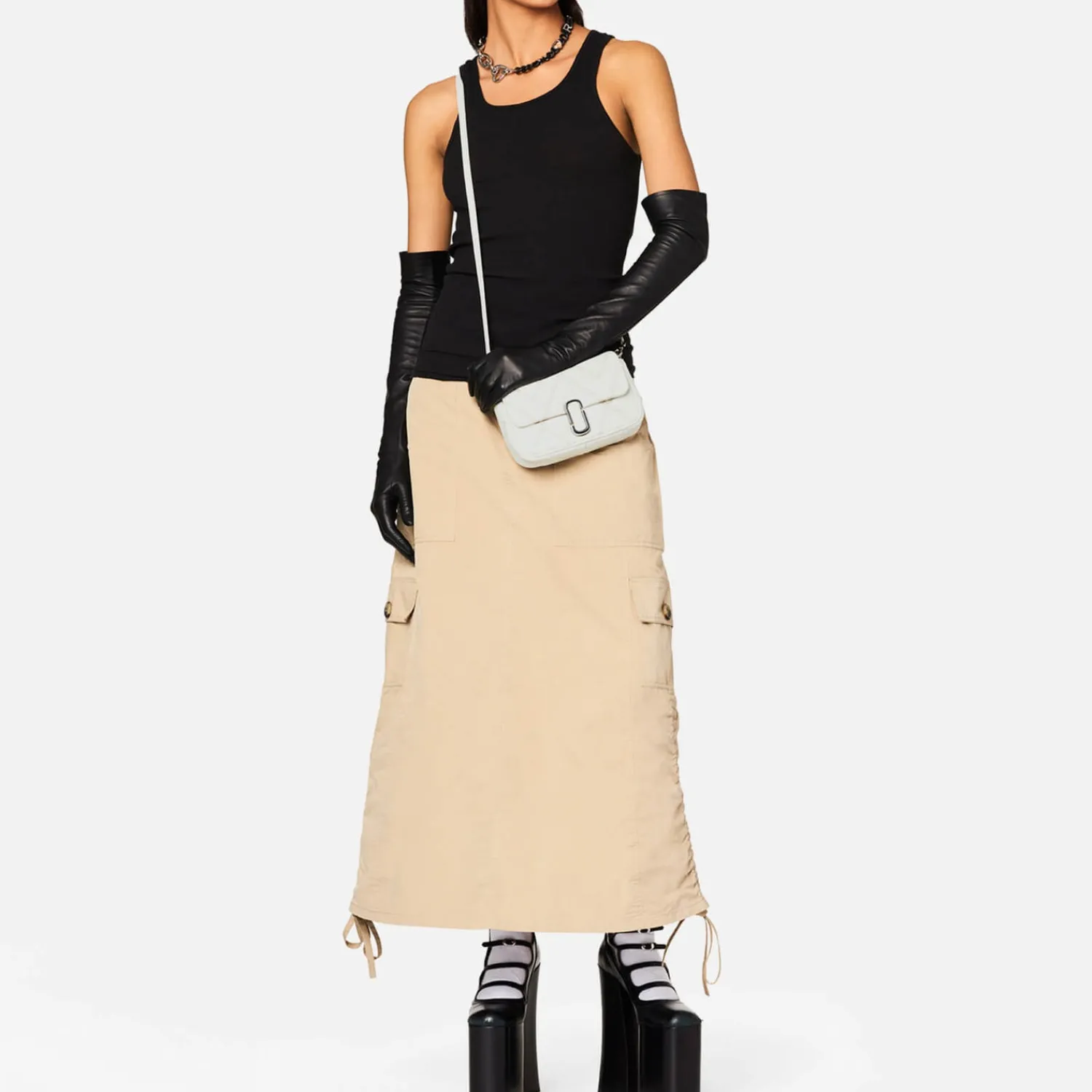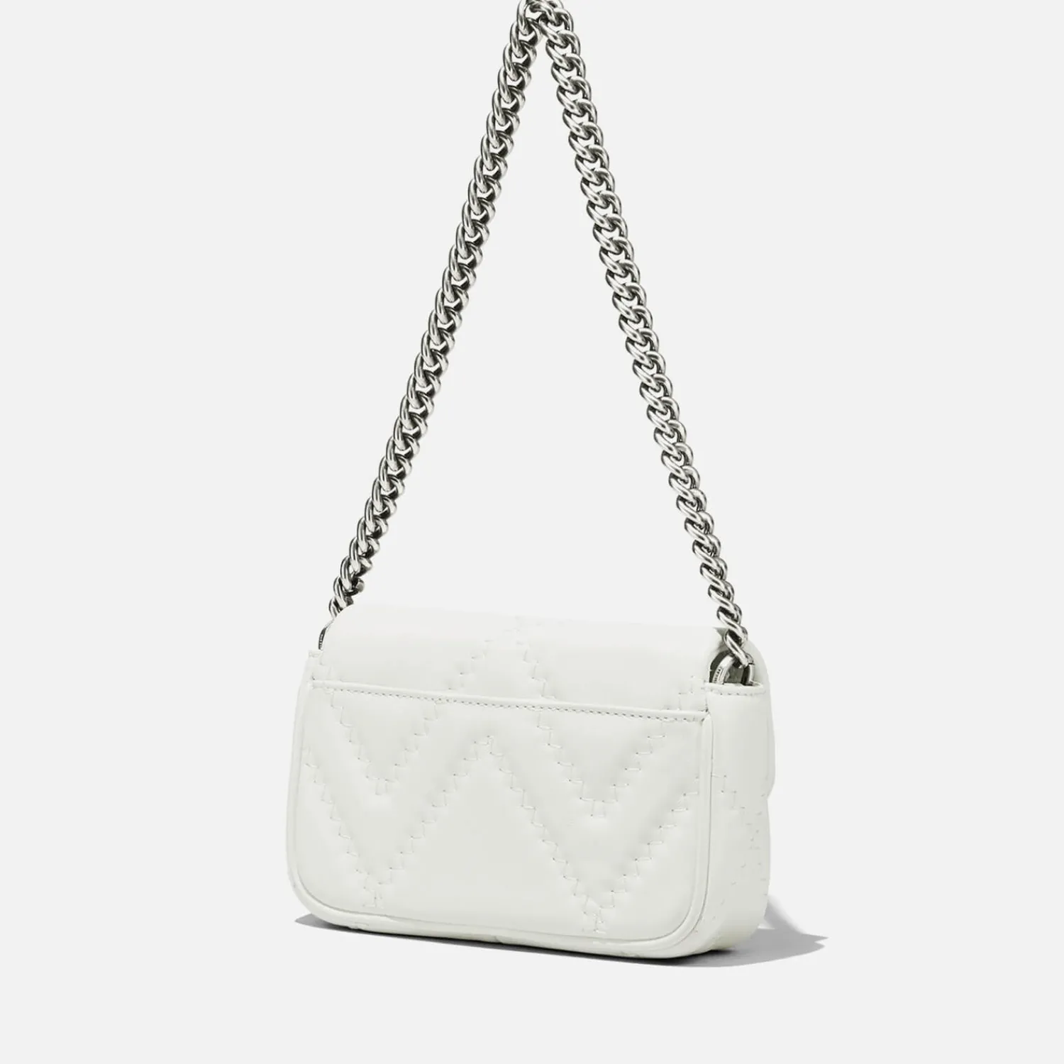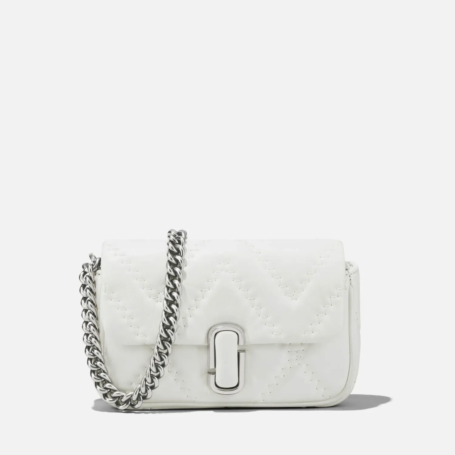 Made From Quilted White Leather Marc Jacobs’s The Mini J Marc Slips Effortlessly Over The Shoulder And Is Supported With A Chain Strap For Day-To-Night Appeal. The Double J Monogram Punctuates The Face As A Statement Sign-Off And Doubles As A Push-Lock Closure.