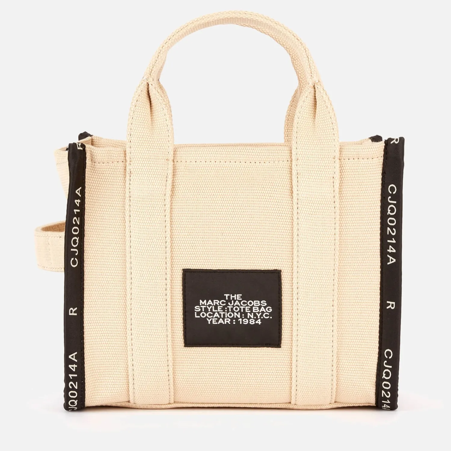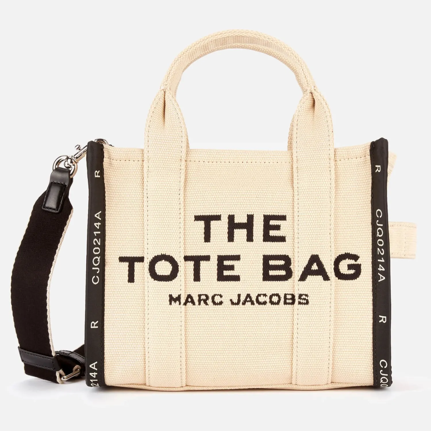 Marc Jacobs’ Essential Tote Is Now Available In A Mini Size. Crafted From Jacquard Material The Bag Boasts A Sturdy Yet Soft Silhouette Decorated With A Signature Branding Embroidered On The Front. A Zip-Top Closure Reveals The Lined Interior Detailed With A Trademark Branding Plaque. Carried By The Twin Handles Or Removable Webbing Strap The Bag Can Be Worn On The Shoulder Across The Body Or Simply Carried In The Hand.