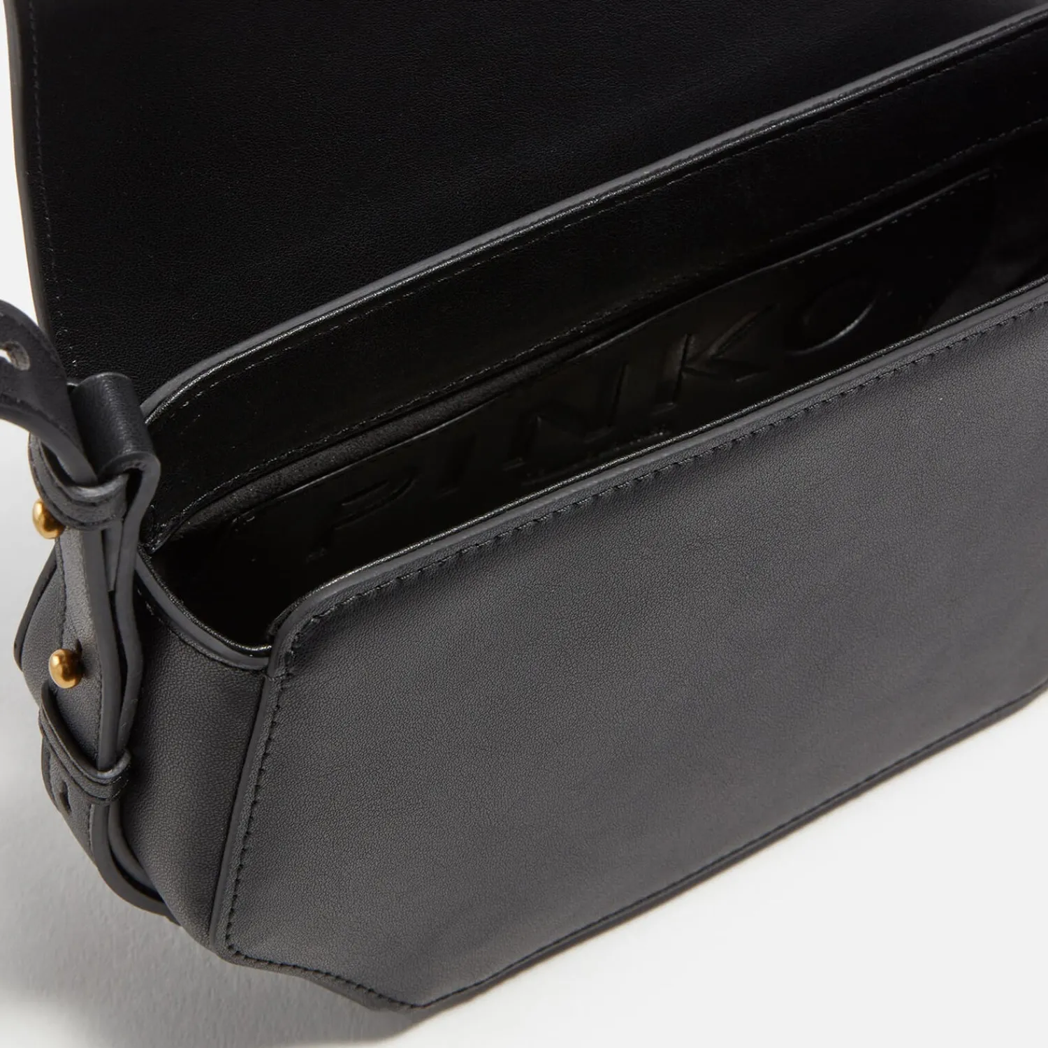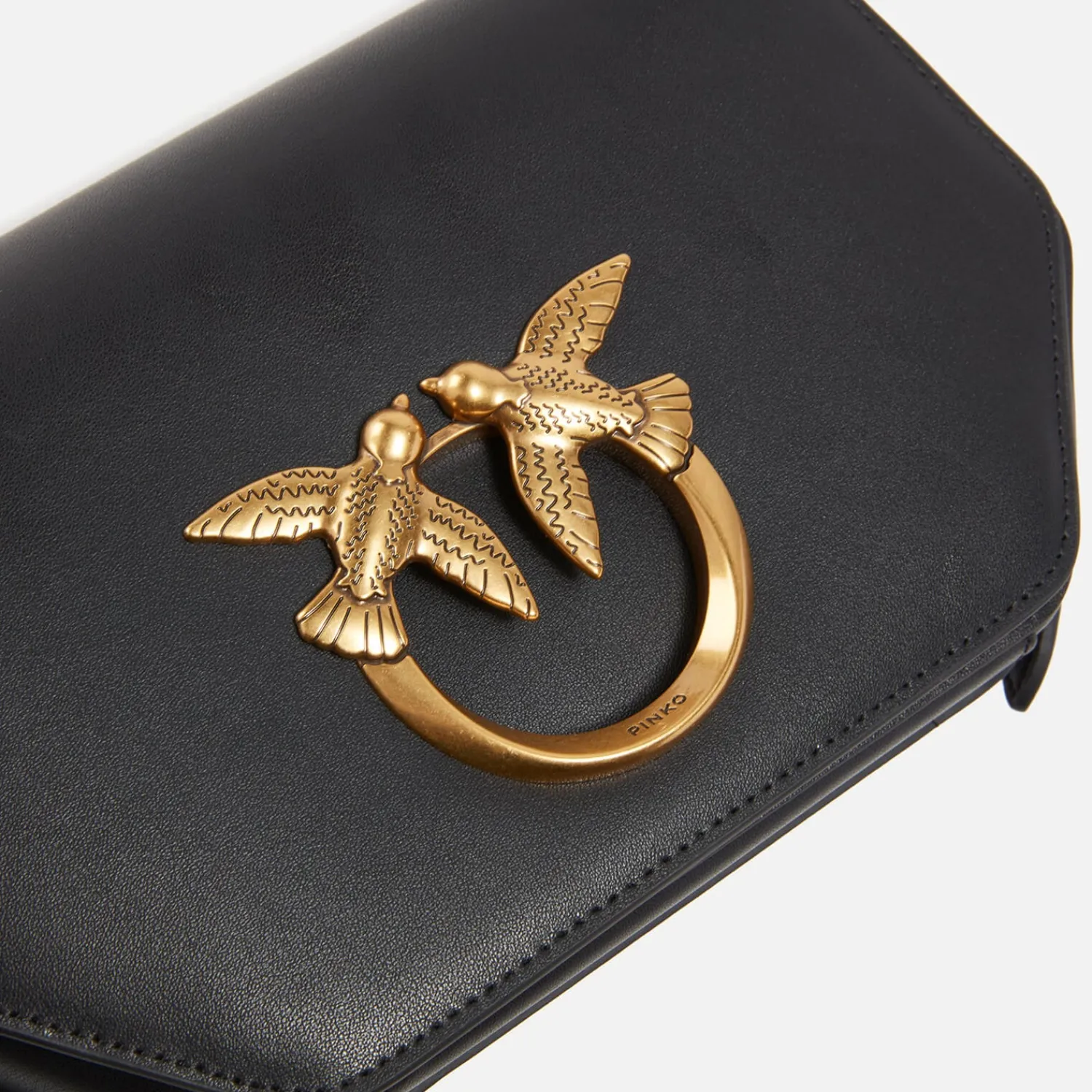 Pinko Love Click Exagon Mini Vitello Crossbody BagBlack LeatherShoulder StrapGold-Tone Logo PlaqueInternal Slip PocketFu…