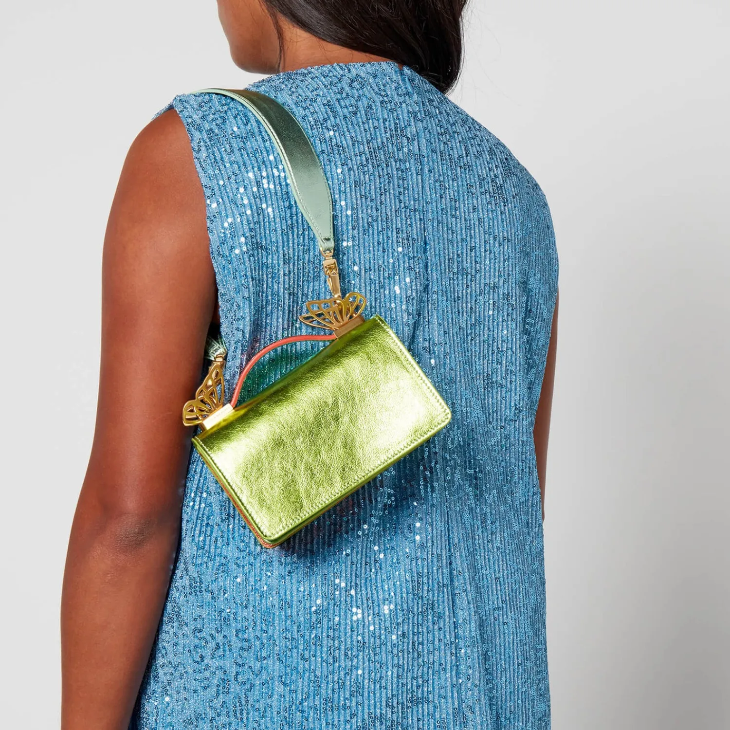 It’s The Bright Colour Palettes And Signature Touches That Make Sophia Webster’s Designs So Unique. This Mariposa Shoulder Bag Is Made From Metallic Colour-Block Leather Complemented By Gold-Tone Hardware Including A Chain Strap And Butterfly Wings.