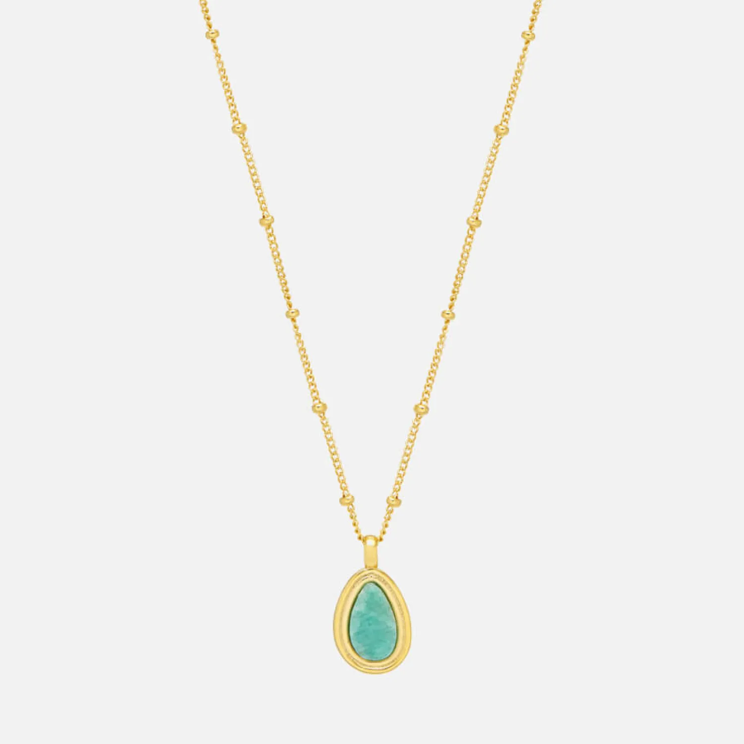 Estella Bartlett Is Based In The Heart Of London Close To Tate Modern Where The Design Team Gets Much Of Their Inspiration. This Necklace Is Cast From Gold-Plated Metal With A Beaded Dainty Chain And Pear-Shaped Pendant Encrusted With A Lustrous Amazonite.