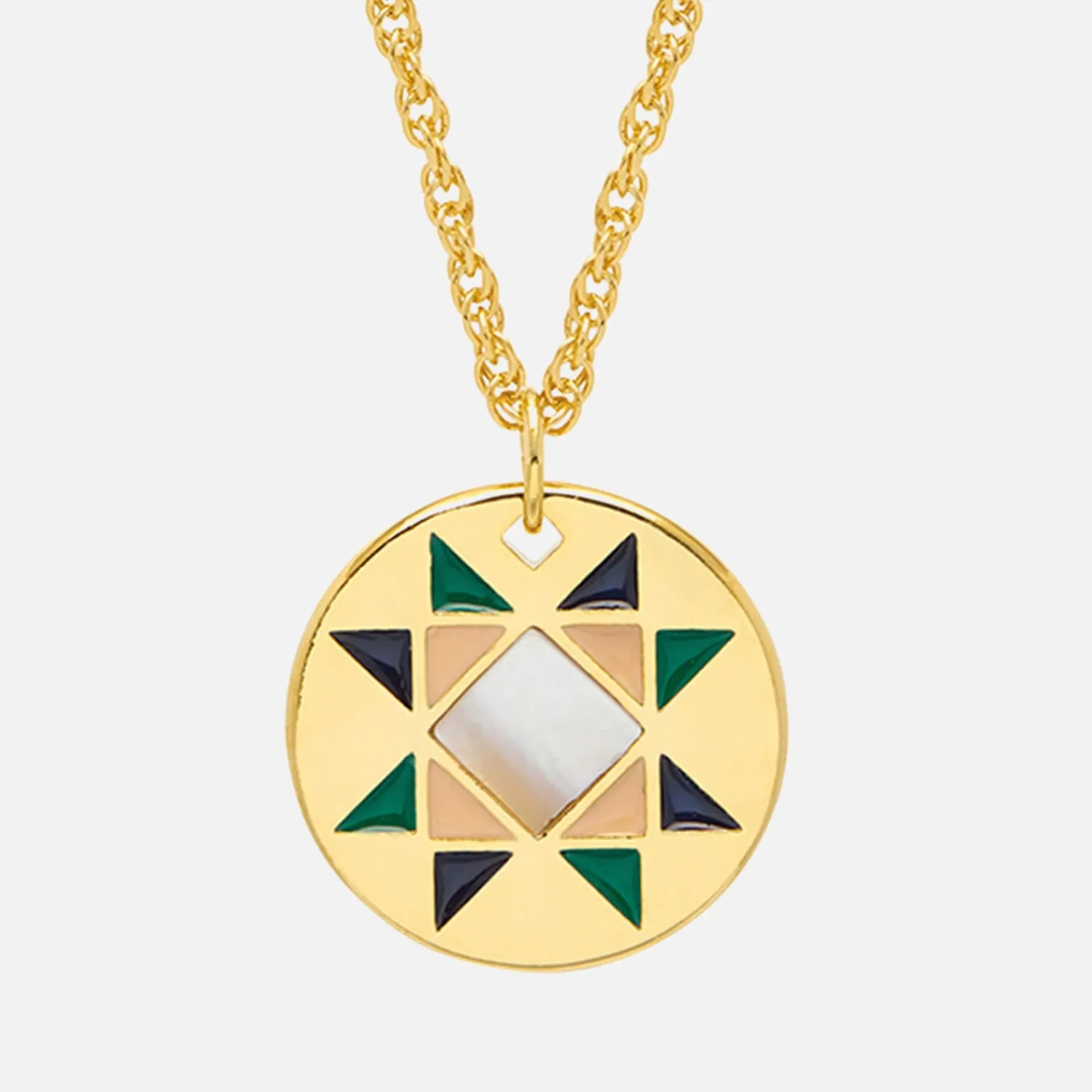 Necklaces*Estella Bartlett Gold-Plated Quilted Pattern Round Pendant