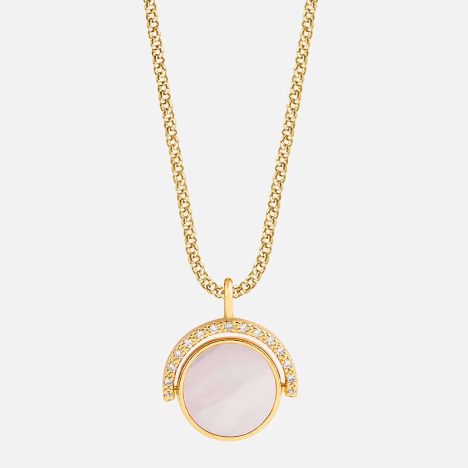 A Dainty Token That Exudes Elegance The Joma Jewellery Live Love Sparkle Necklace Features A Silver-Plated Brass Chain Finished In A Warm Gold Tone That Perches Delicately On The Neckline. Suspended From This Is A Bejewelled Mother Of Pearl Disc Pendant That Rotates To Reveal A Heartwarming Sentiment: ‘One In A Million’. A Charming Gift For Jewellery Lovers.