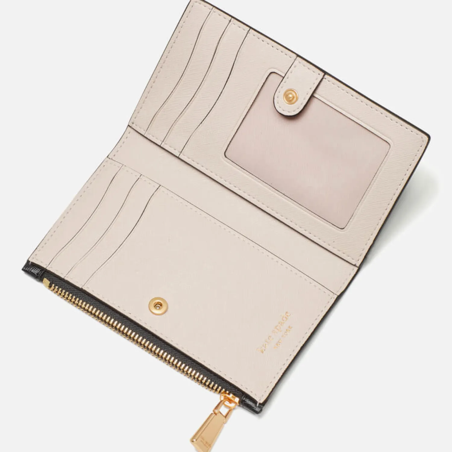 Kate Spade New York WalletBlack Saffiano LeatherGold-Tone LogoInternal Zipped Coin PocketTransparent Id SlotFive Card Sl…