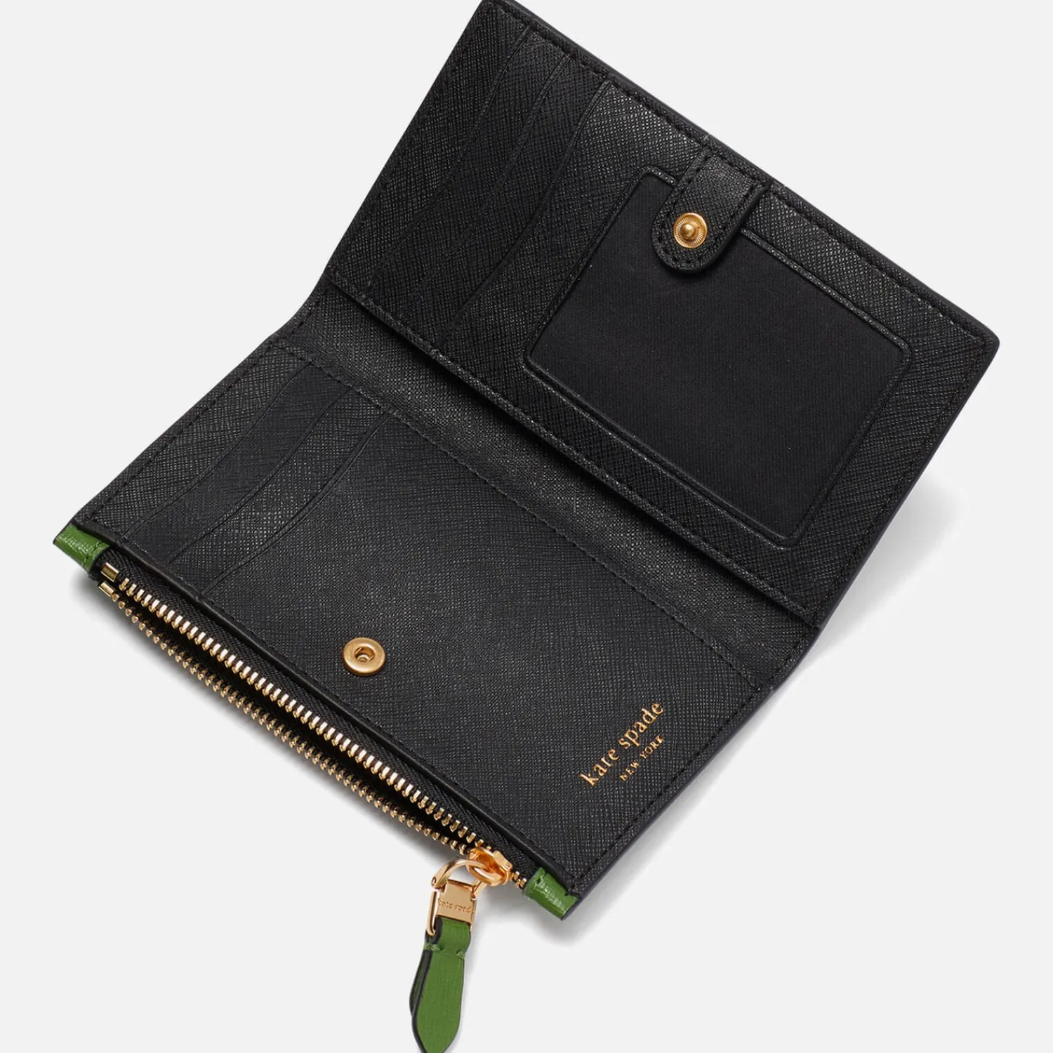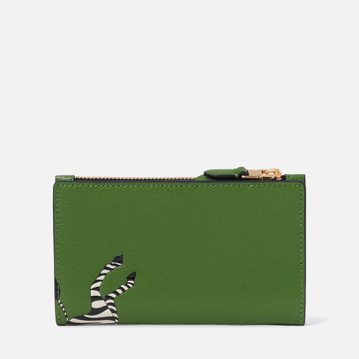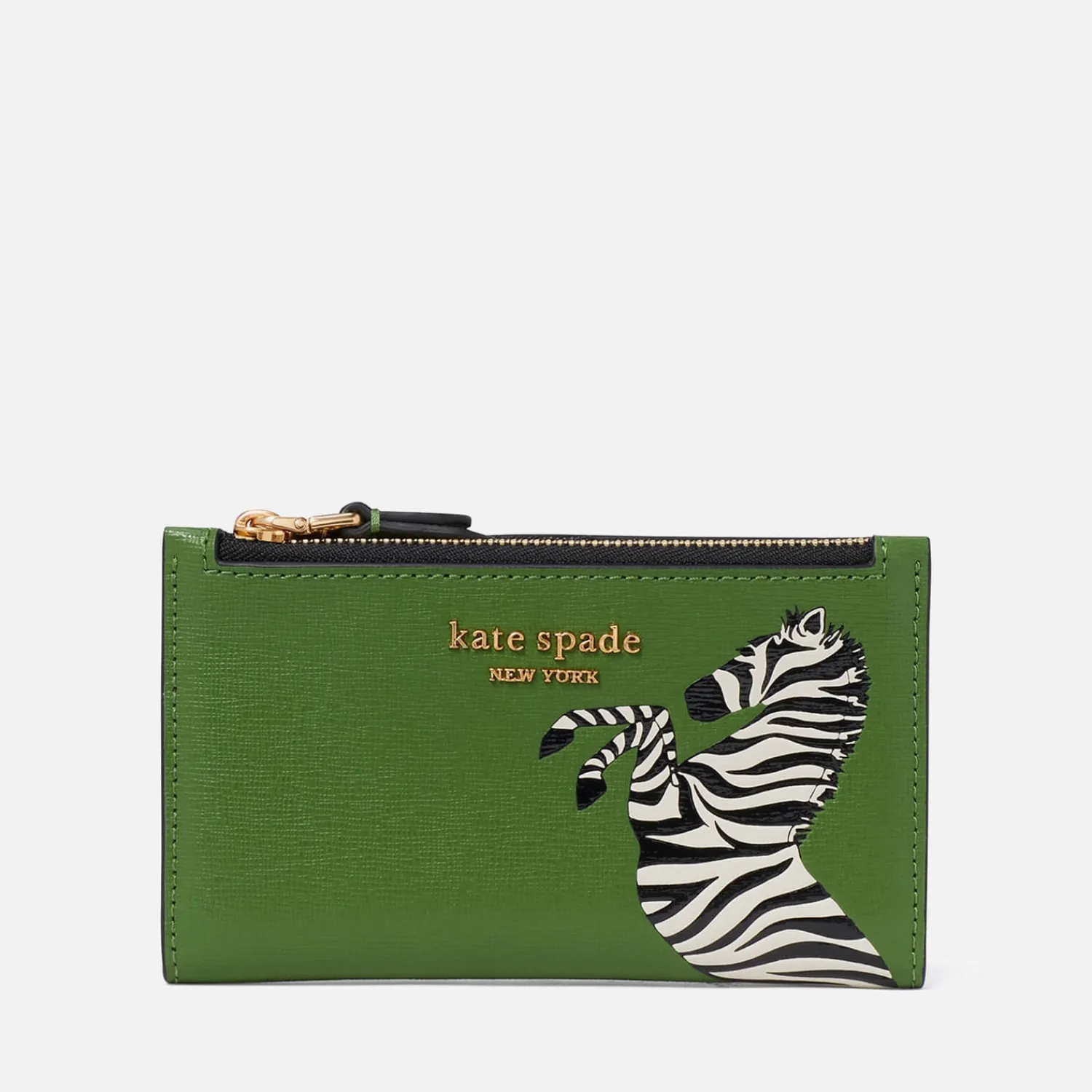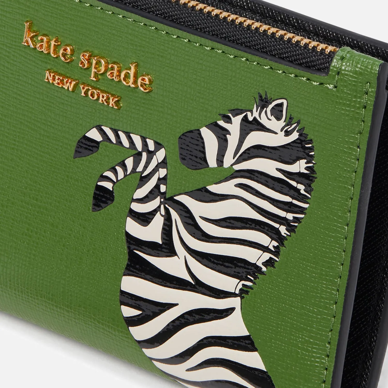 Kate Spade New York Zebra Bifold WalletGreen Saffiano LeatherZebra MotifGold-Tone Designer LogoSix Internal Card SlotsId…