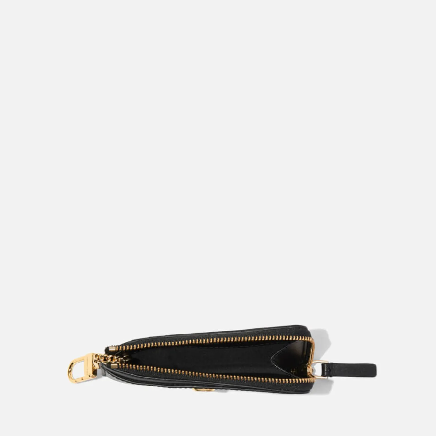 Belonging To The Signature And Coveted J Marc Collection The J Marc Top Zip Multi Wallet Slots Effortlessly Into Any Handbag. It Is Made From Smooth Black Leather With Multiple Card Slots And A Zipped Compartment For Coins. A Gold-Tone Chain And Carabiner Clip Tops The Design So You Can Safely Hook It Inside Your Bag Or Suspend It From Your Jeans While On The Go.