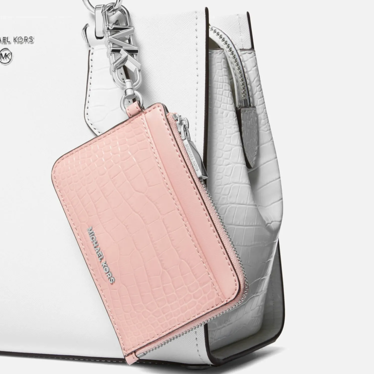 Michael Michael Kors Empire Conversible CardholderPink Crocodile-Effect LeatherDesigner LogoDesigner TagGold-Tone Hardwa…