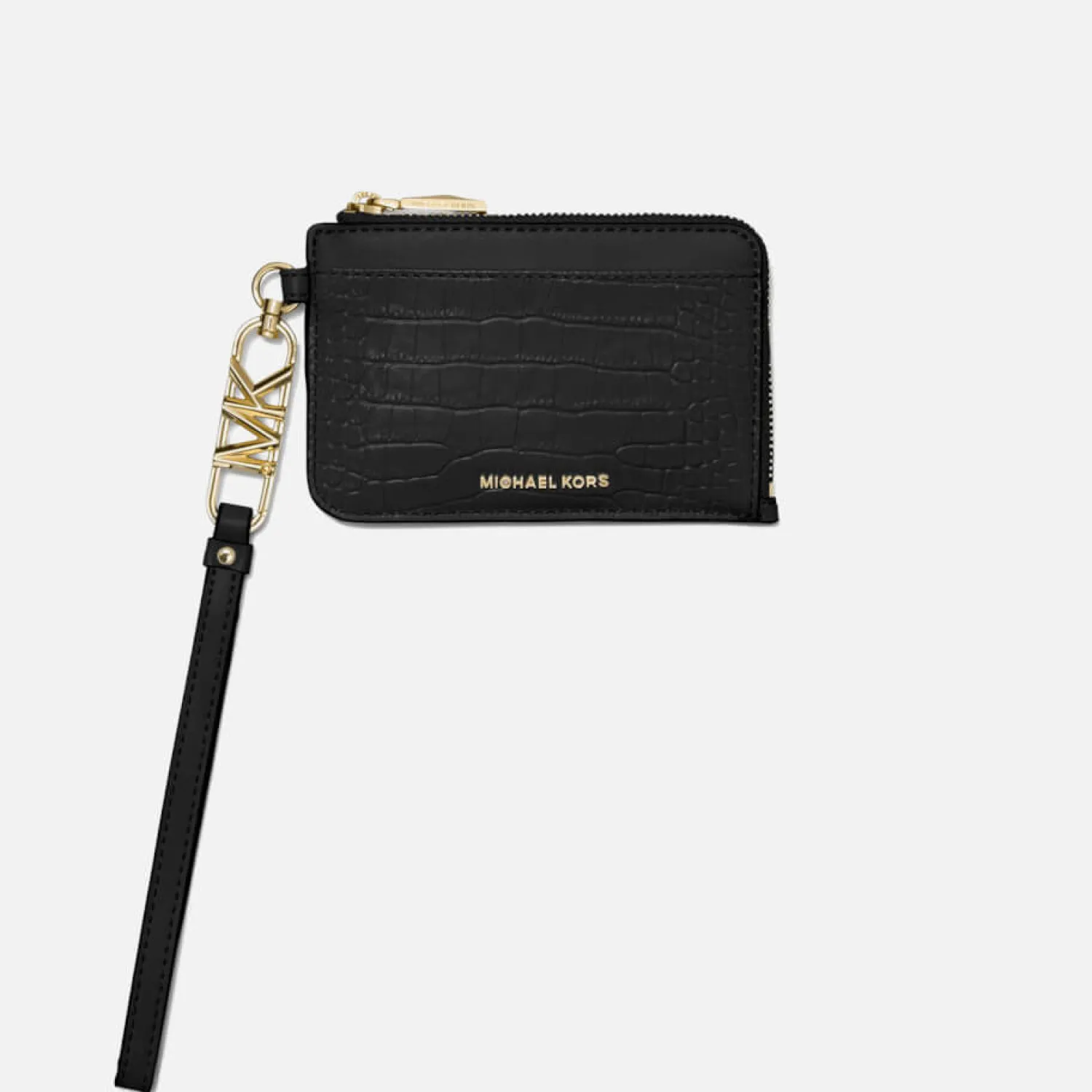 Michael Michael Kors Empire Conversible CardholderBlack Crocodile-Effect LeatherDesigner LogoDesigner Tag Gold-Tone Ha…