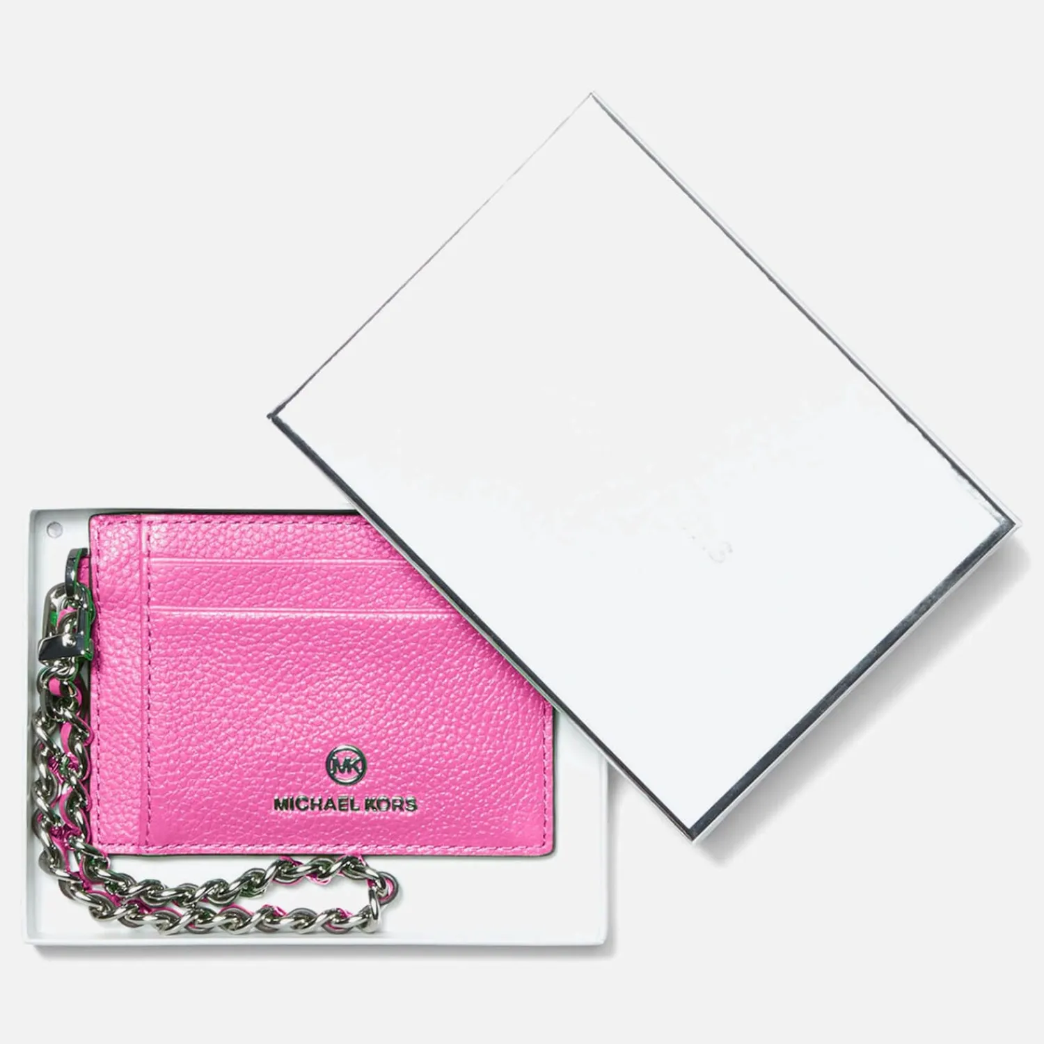 Michael Michael Kors Jet Set Charm Card HolderPink LeatherChain Wrist LoopLogo DetailingId CompartmentThree Card SlotsSi…