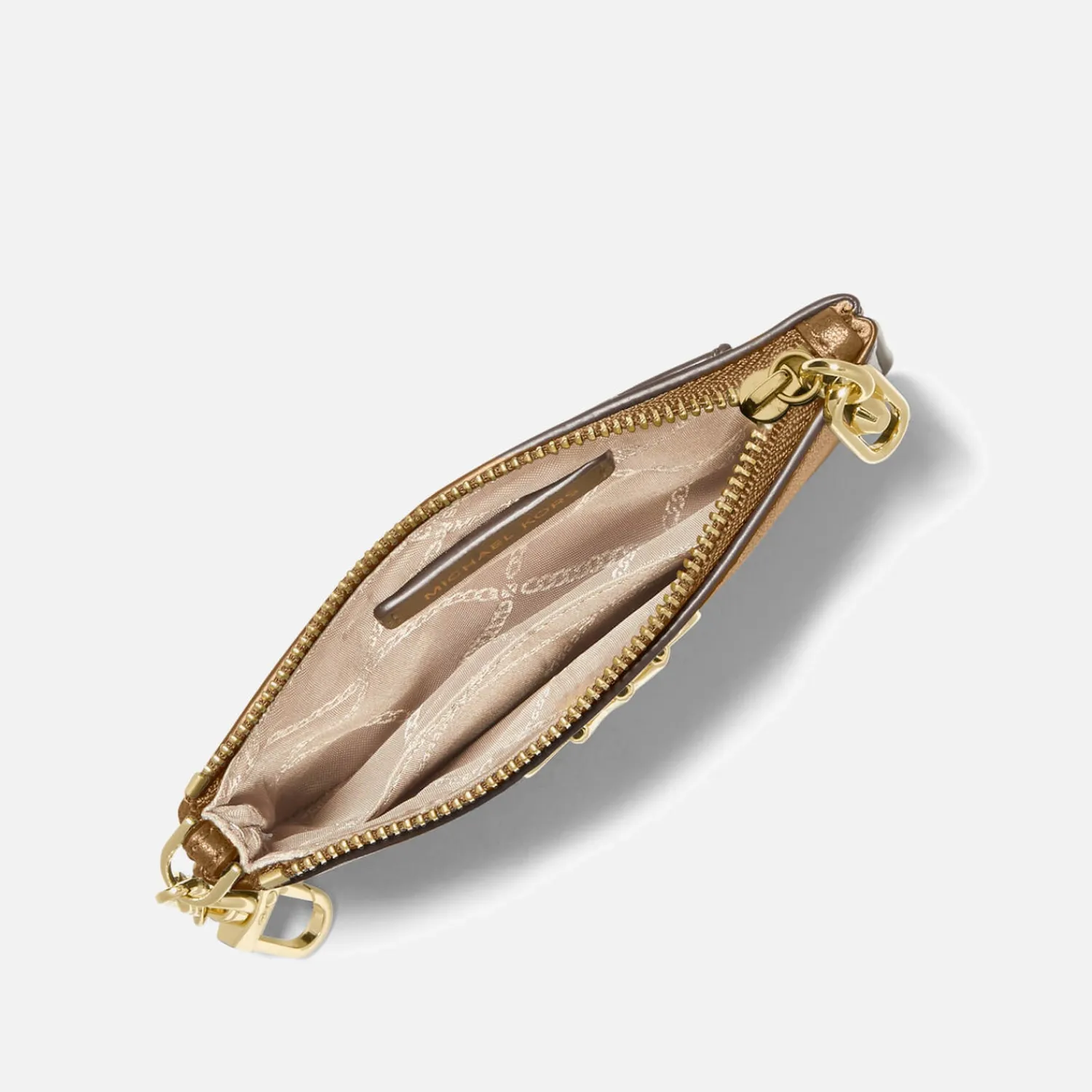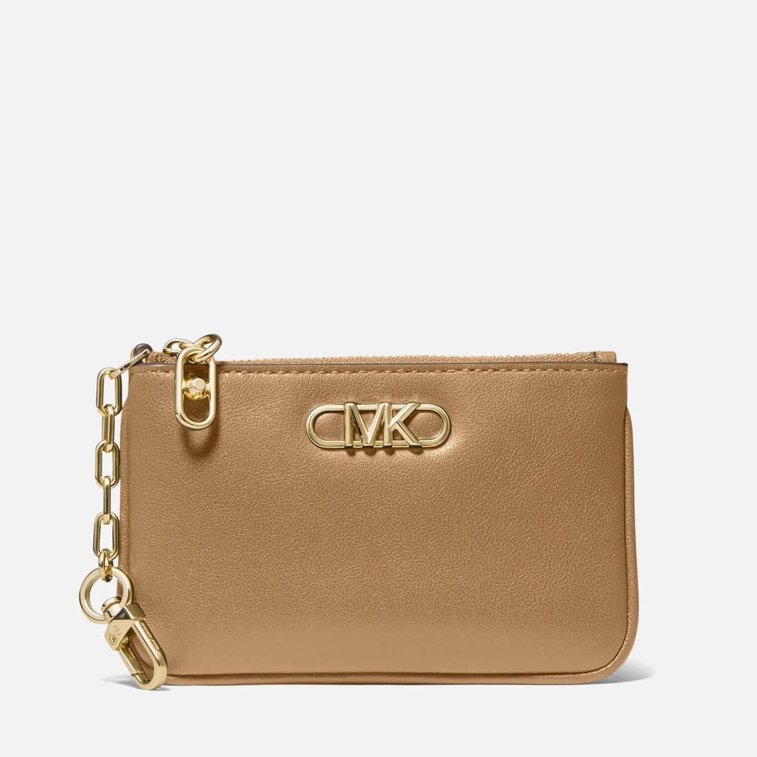 Michael Michael Kors Small Parker CardholderLight Brown LeatherKey ChainDesigner PlaqueGold-Tone HardwareZip Closure