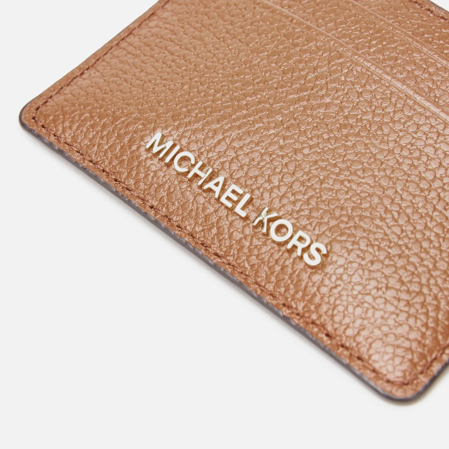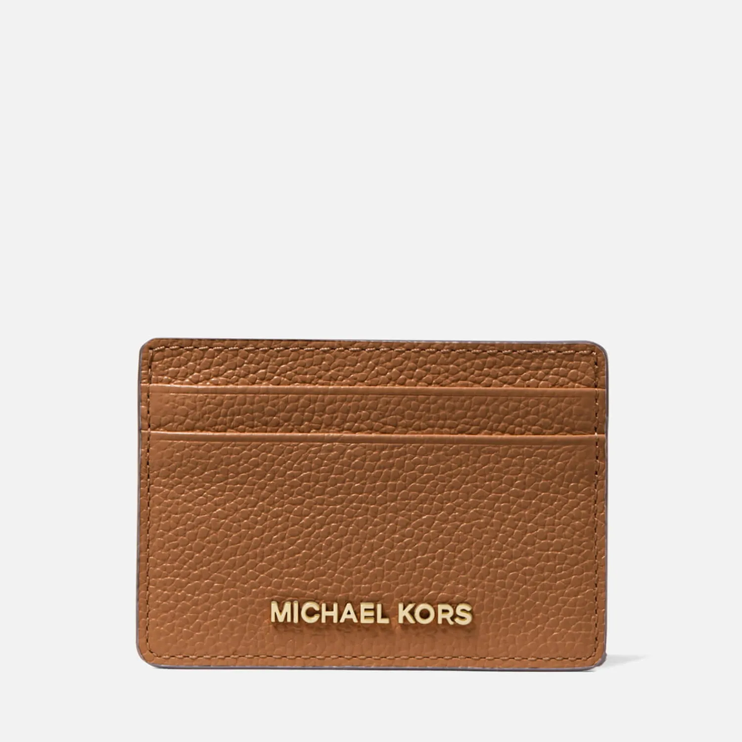 ‘Jet Set’ Card Holder From Michael Michael Kors. Crafted From Calf Leather. Embellished With 3D Logo Lettering In Gold-Tone Metal. Two Card Slots. Logo Printed Grosgrain Lining.