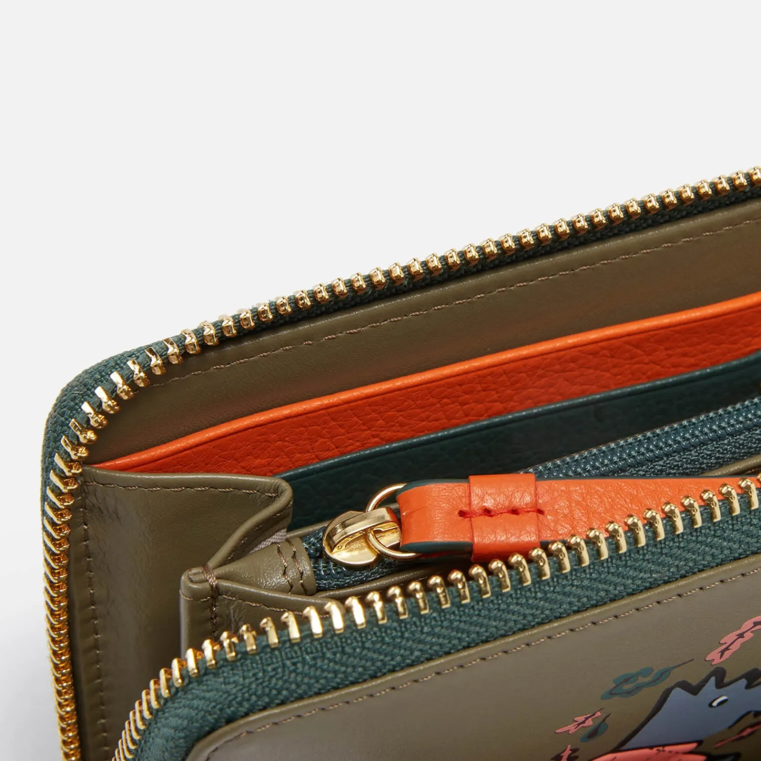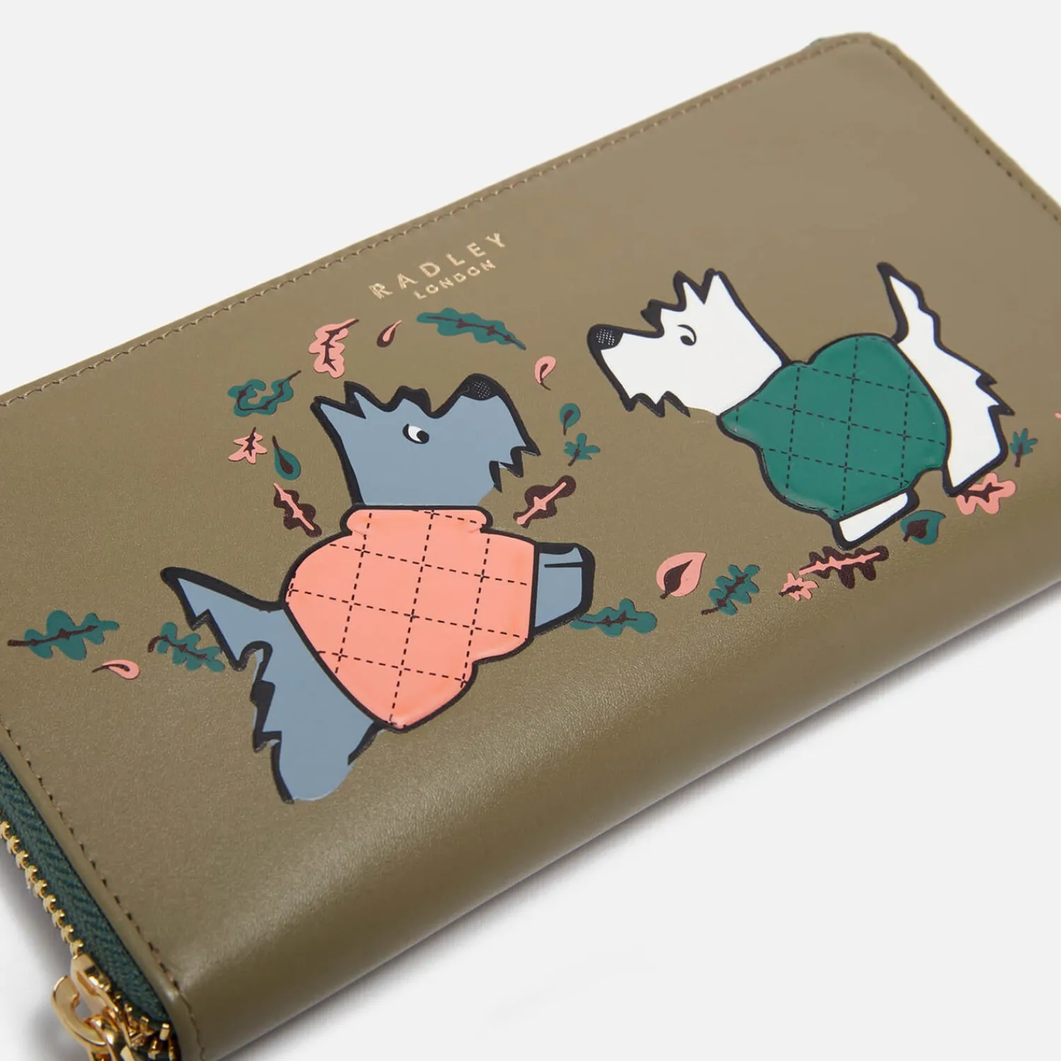 Radley Puffy Jacket Large Zip Around Matinee WalletWinter Moss LeatherGraphic Dog Design With Raised Leather12 Internal …
