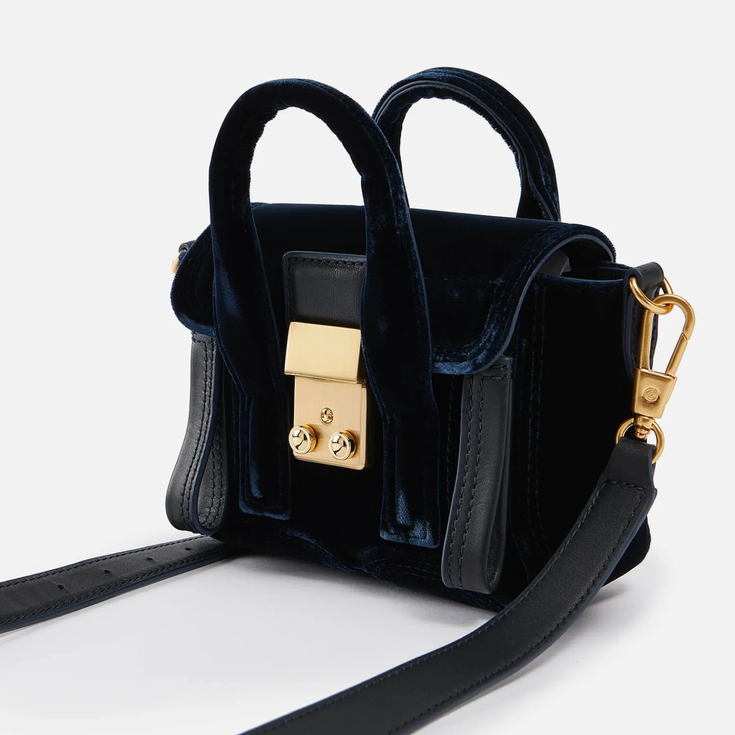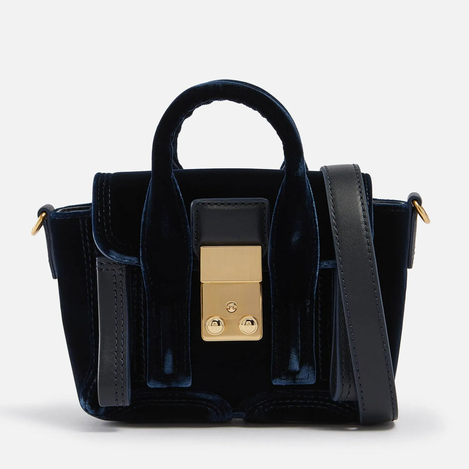 Satchels*3.1 Phillip Lim Pashli Nano Leather-Trimmed Velvet Shoulder Bag Ocean
