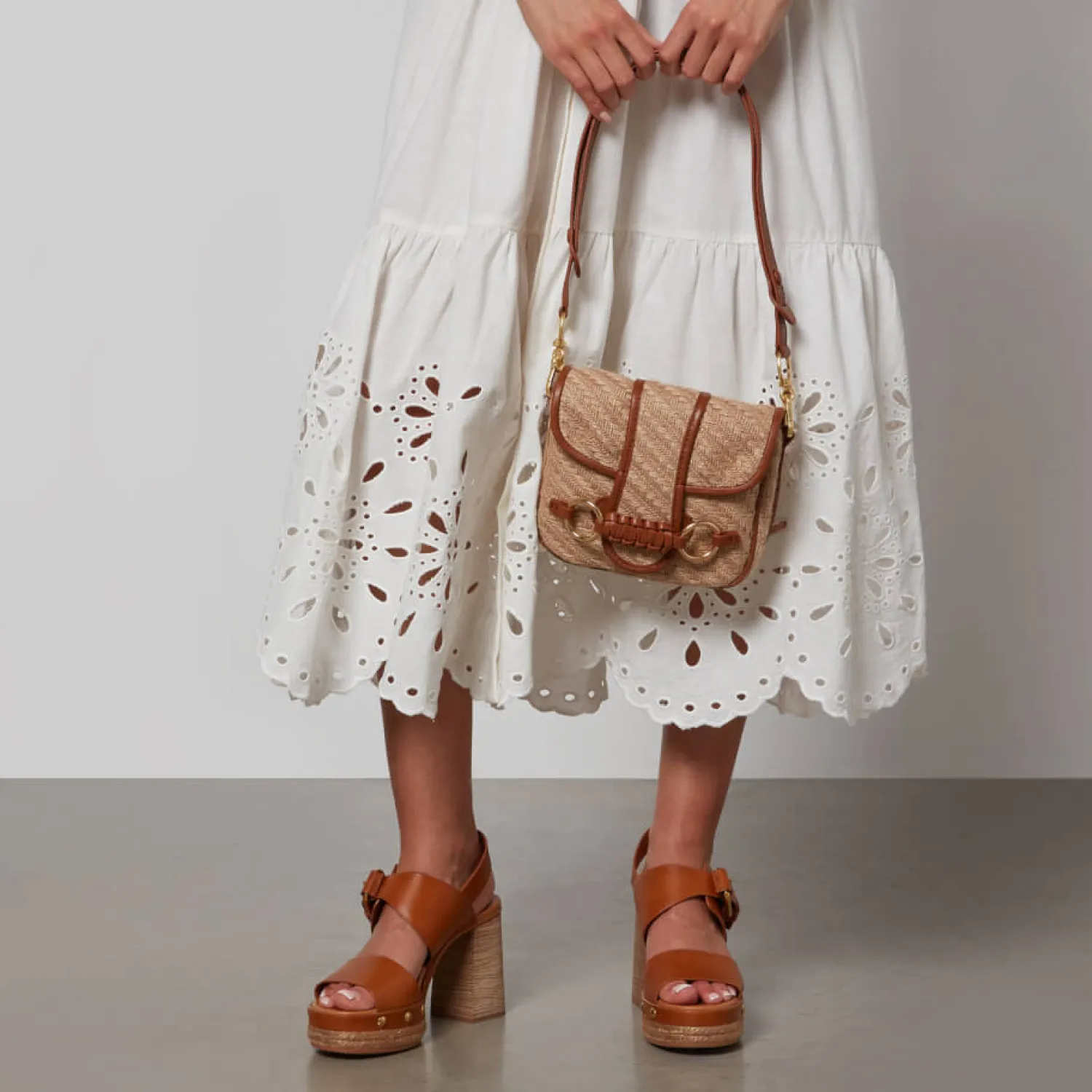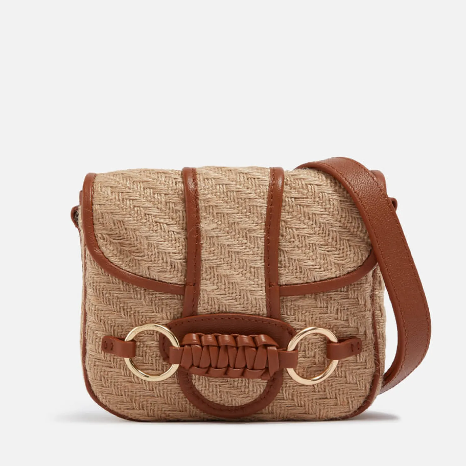 Introducing The Saddie Satchel Bag From See By Chloe. The Classic Retro 70’S Inspired Piece Arrives Reinvented With A Jute Exterior And Smooth Leather Detailing. Featuring A Compact Silhouette The Bag Is Enhanced With Decorative Braiding And Gold-Toned Rings.