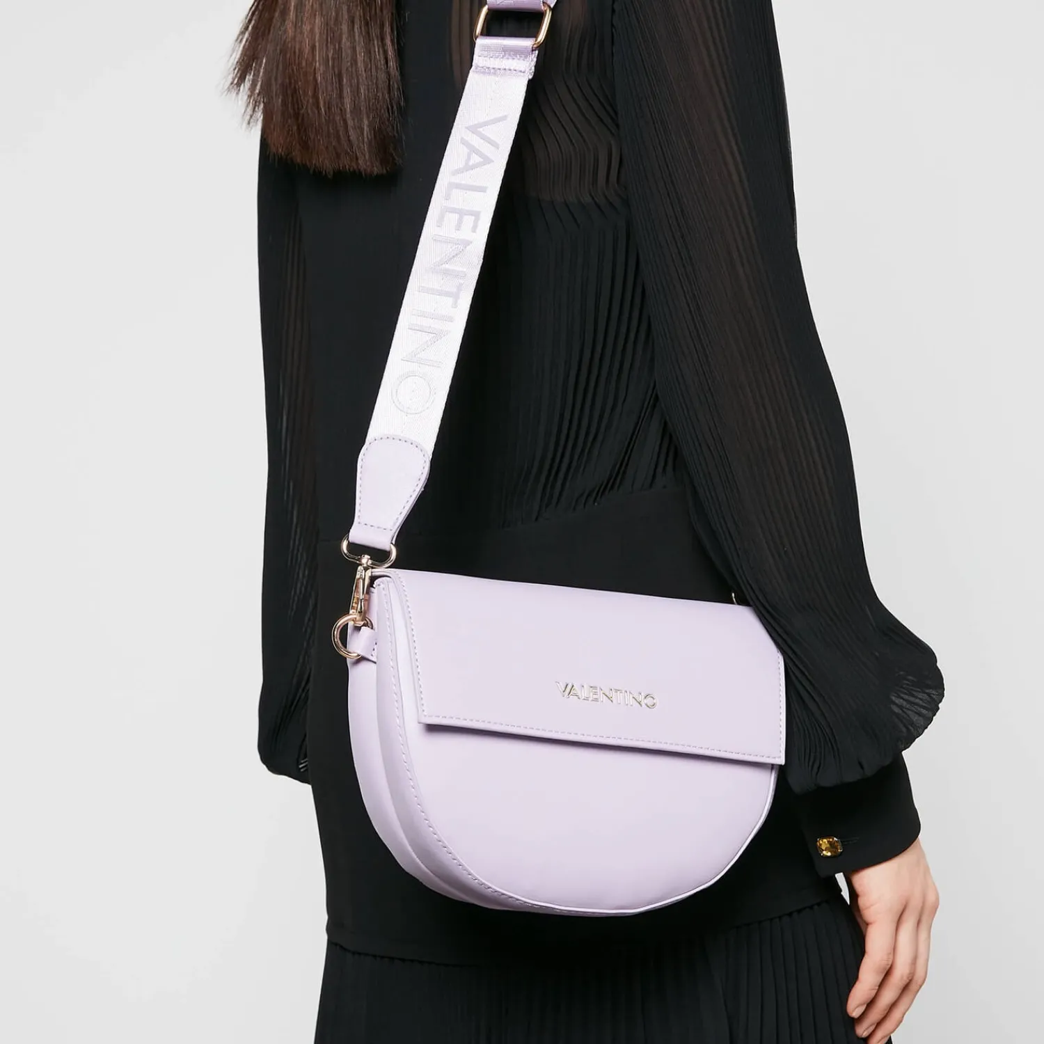 Valentino Bigs Satchel BagPurple Faux LeatherJacquard Shoulder StrapGold-Tone Designer LogoSnap Fastening Front Flap