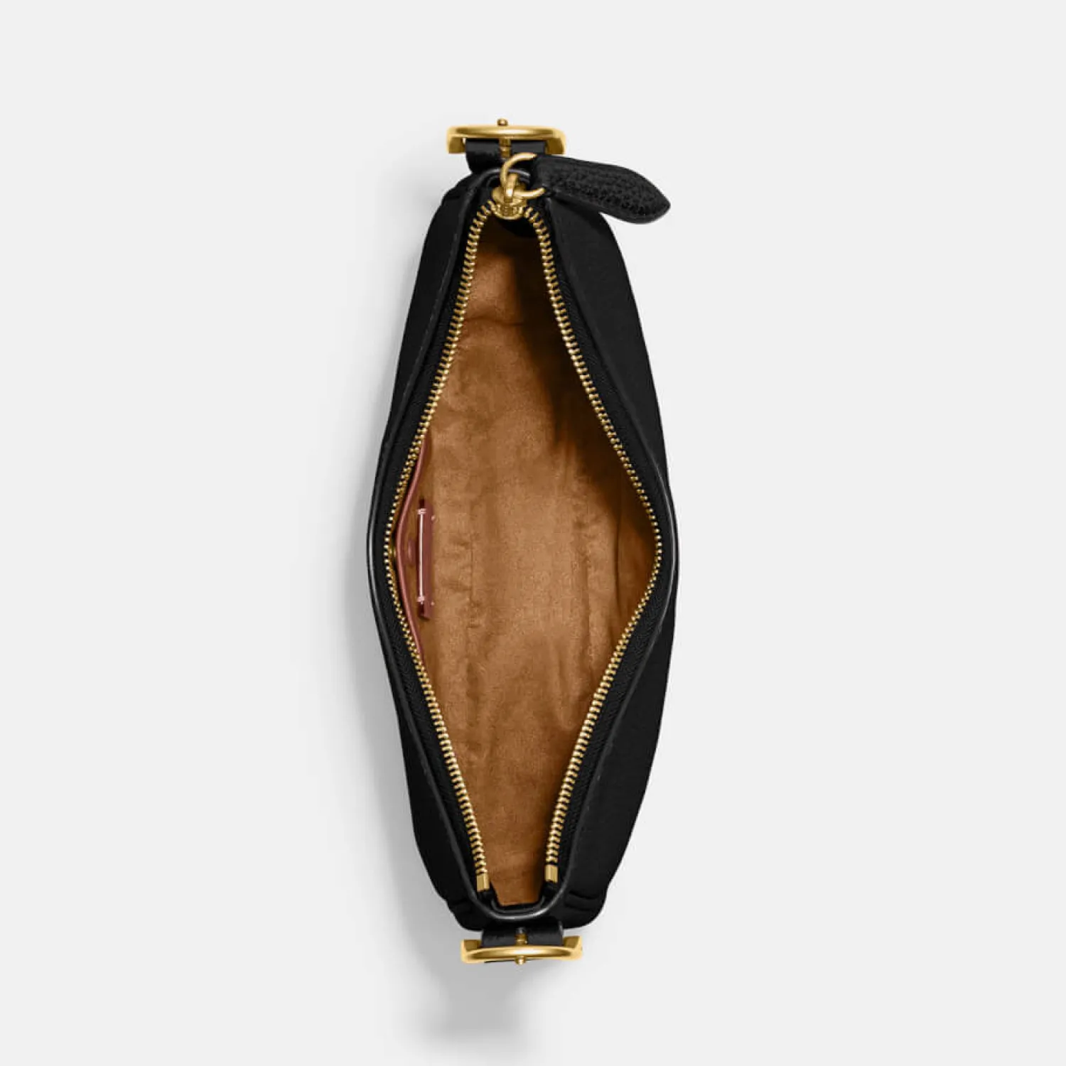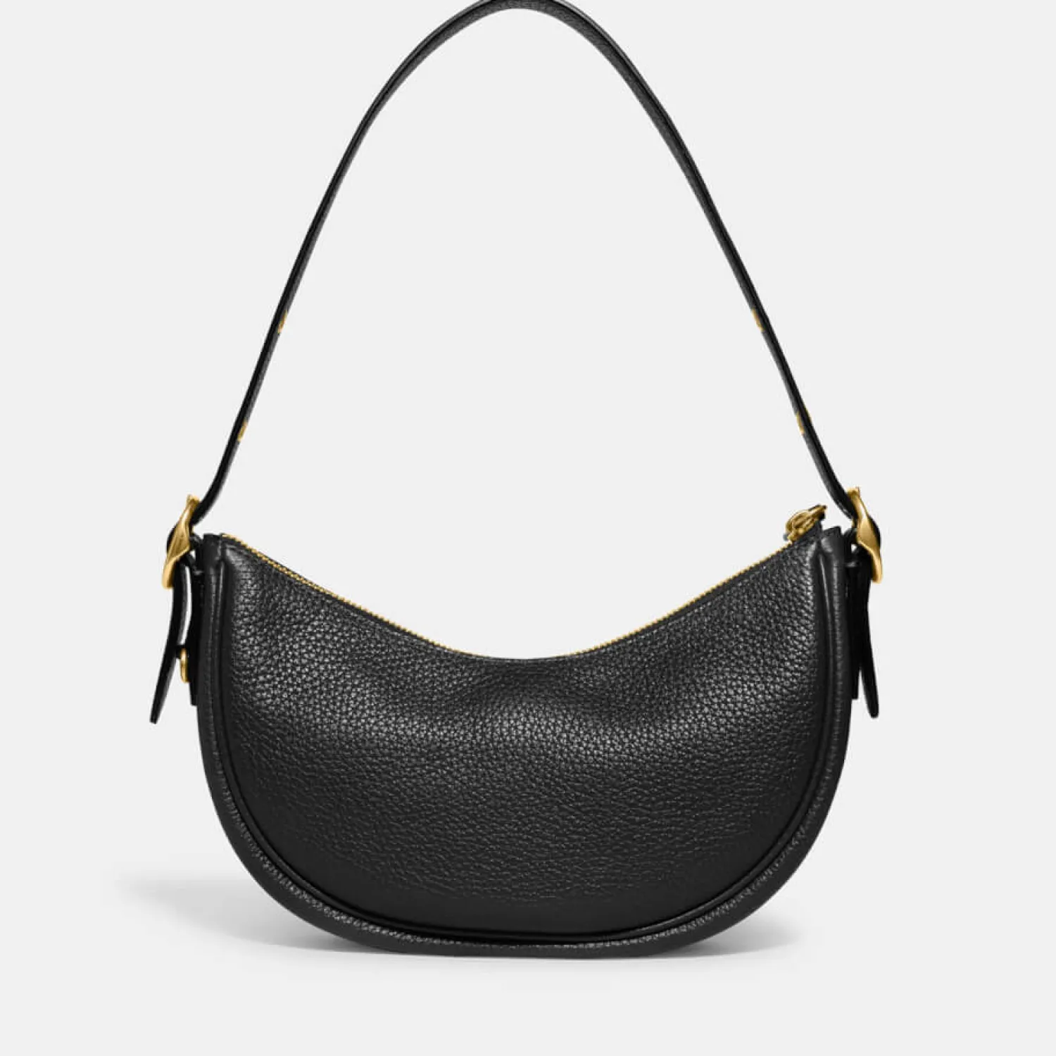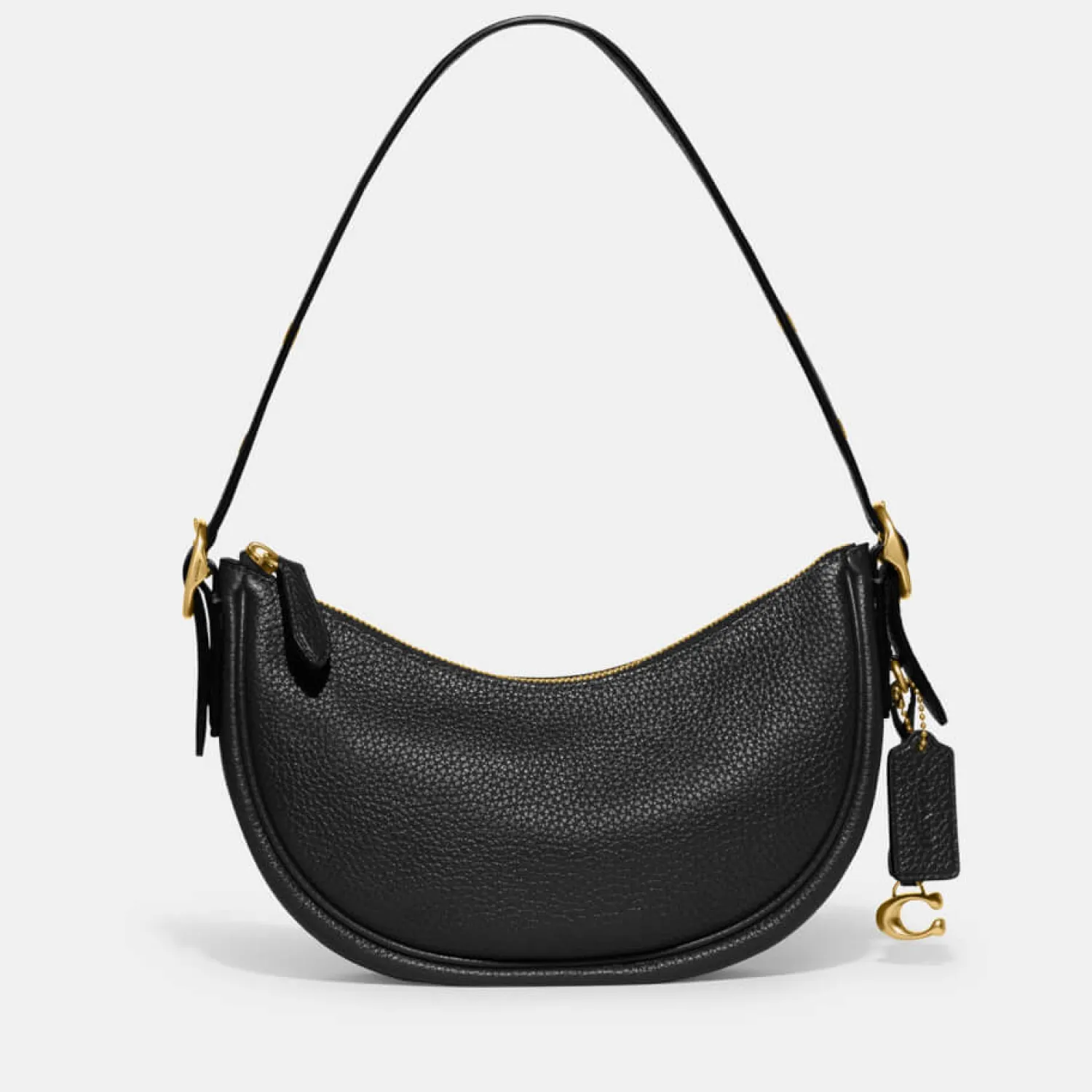 Coach Draws From ‘90S Baguette Silhouettes To Inspire The Luna Shoulder Bag. Made From Pebbled Black Leather Antiqued Gold-Tone Hardware Brings A Polished Feel To The Curved Silhouette. Its Fully-Lined Interior Is Primed For Housing Your Phone Keys And Purse.