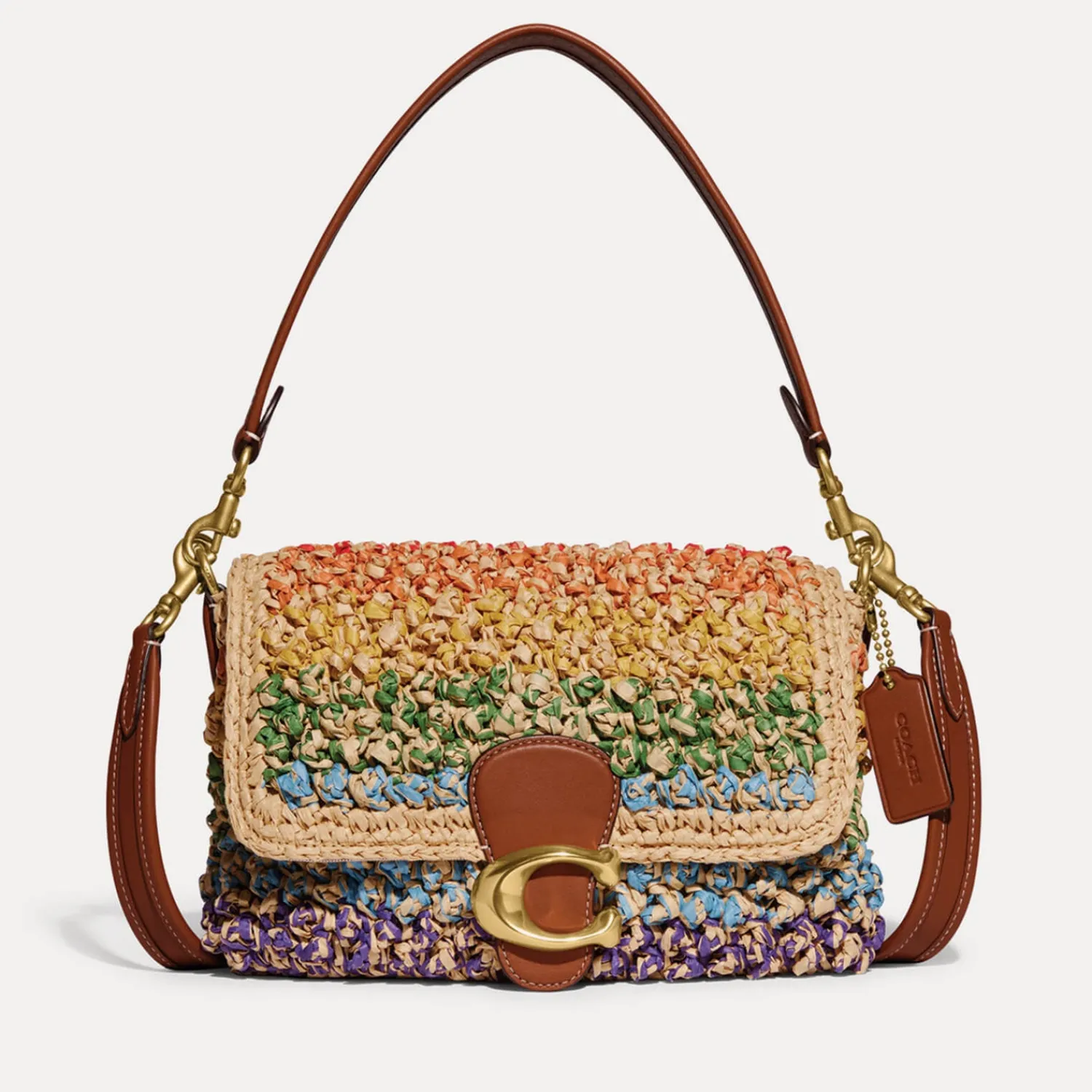 Coach Reworks Its Signature Tabby Into A Striking High Summer Rendition. Made From Multicoloured Raffia The Design Is Offset With Smooth Tan Leather Handles And Is Sealed With The Iconic ‘C’ Monogram In Gold-Tone Detail.