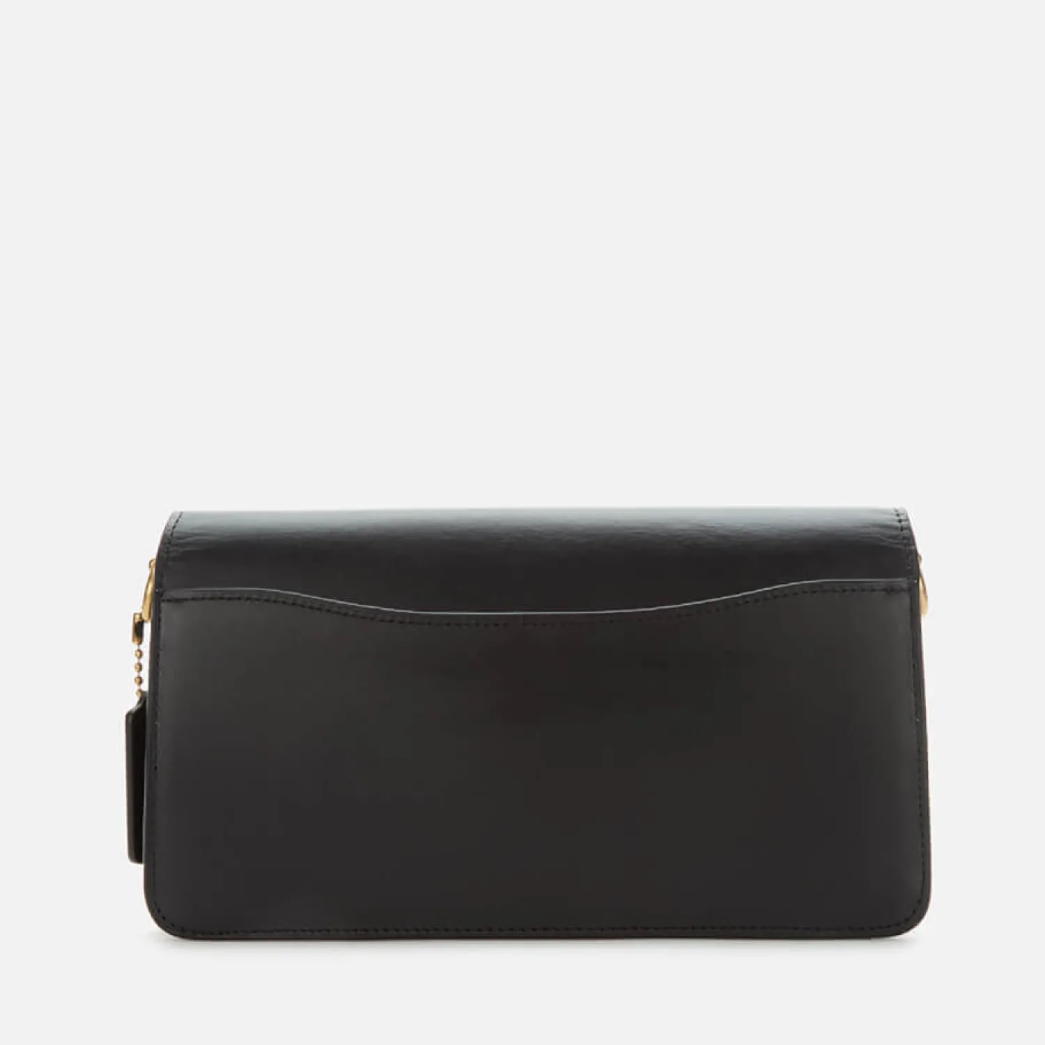 Marked At The Clasp By Signature Coach Initial Branding, The Magnetic Snap Button Fastening Opens To Reveal A Fully-Lined Plum Suede Interior. A Dividing Internal Zip Pocket Runs Through The Centre, While A Side Wall Slip Pocket Helps To Keep Your Belongings Organised. The Black Bag Is Complete With A Rear Slip Pocket, Gold-Toned Hardware And Signature Coach Fabric Branding At The Centre.