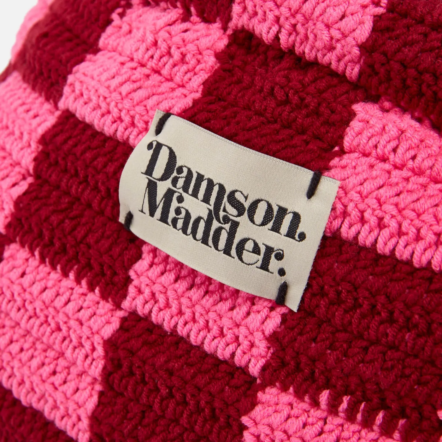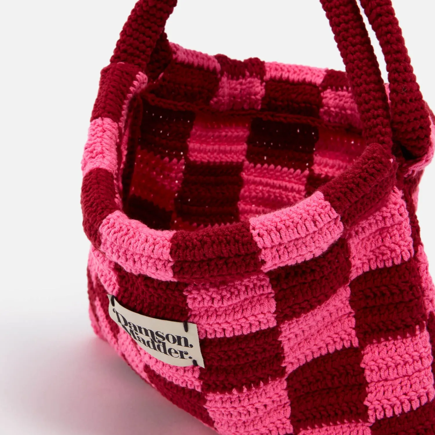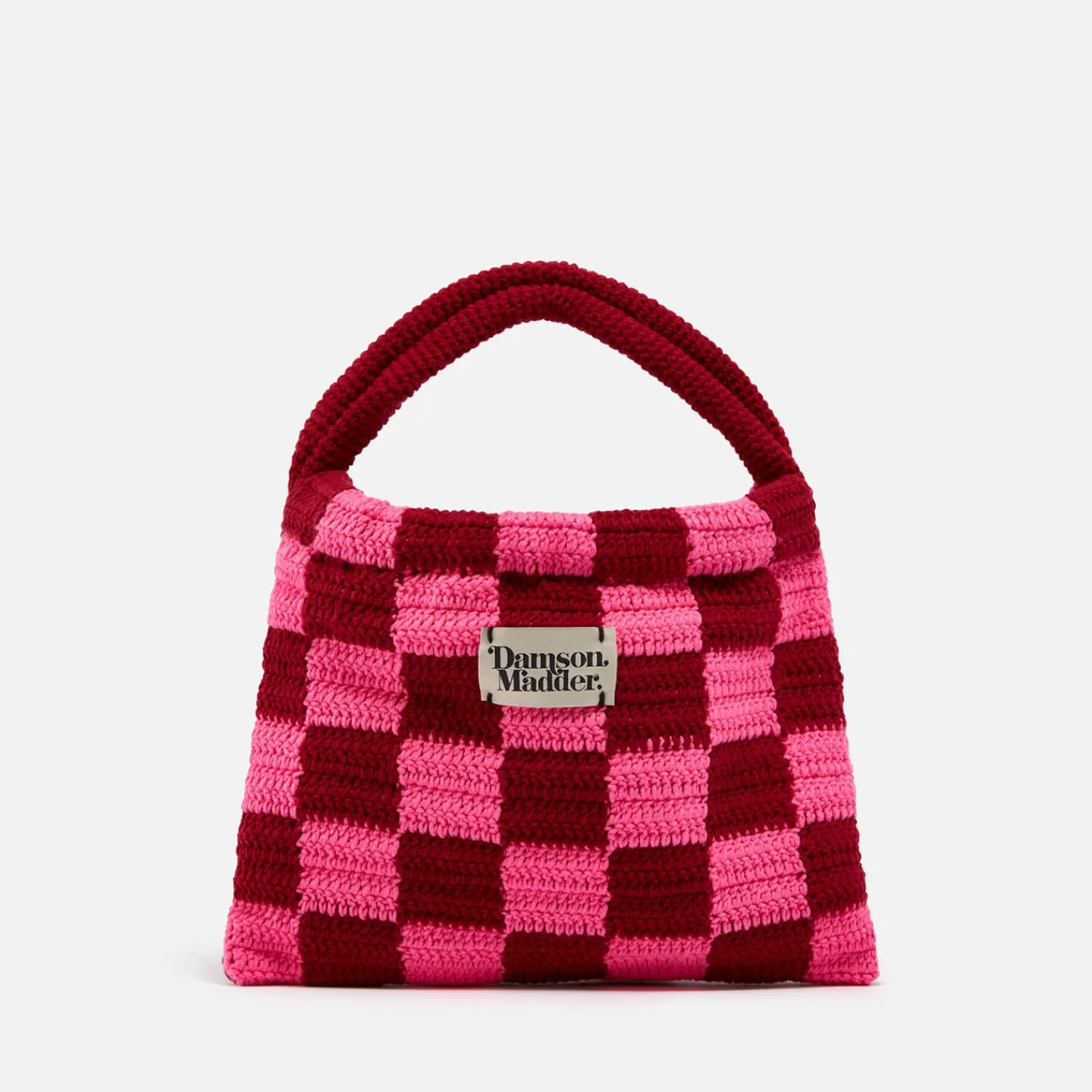 Damson Madder Adopts A Retro Bohemian Mood With This Checkerboard Bag. Crocheted In Pink And Red Tones It Arrives In A Compact Silhouette And Is Topped With Small Top Handles That Offer Grab-And-Go Appeal. The Label’s Cursive Logo Is Tacked Onto The Front As A Custom Sign-Off.