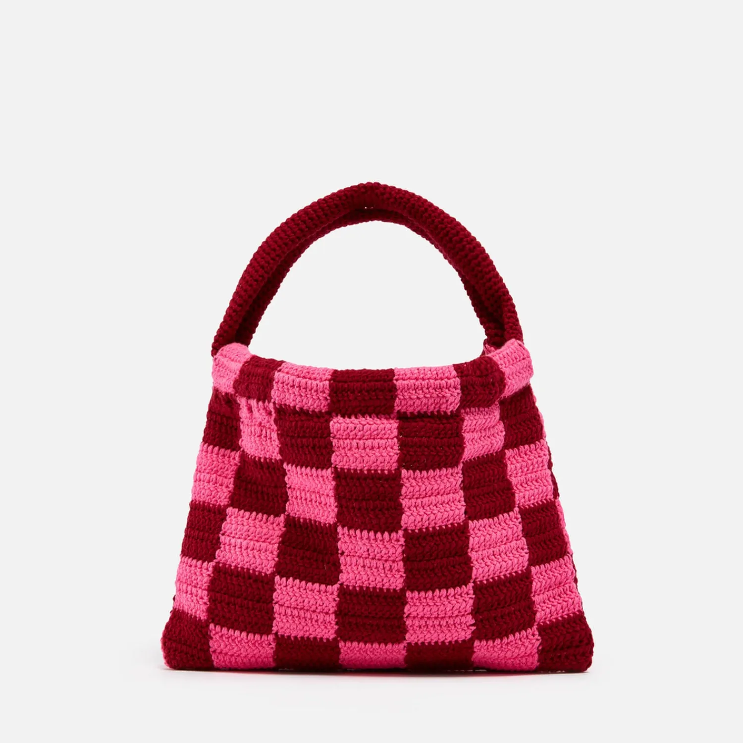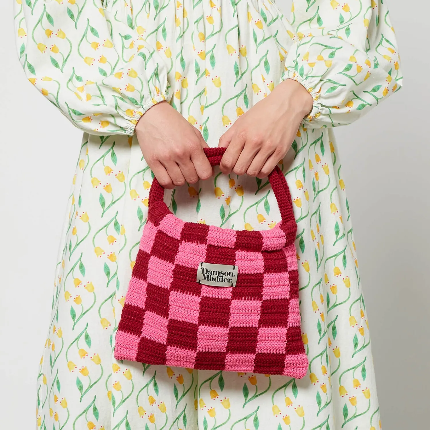 Damson Madder Adopts A Retro Bohemian Mood With This Checkerboard Bag. Crocheted In Pink And Red TonesIt Arrives In A Co…