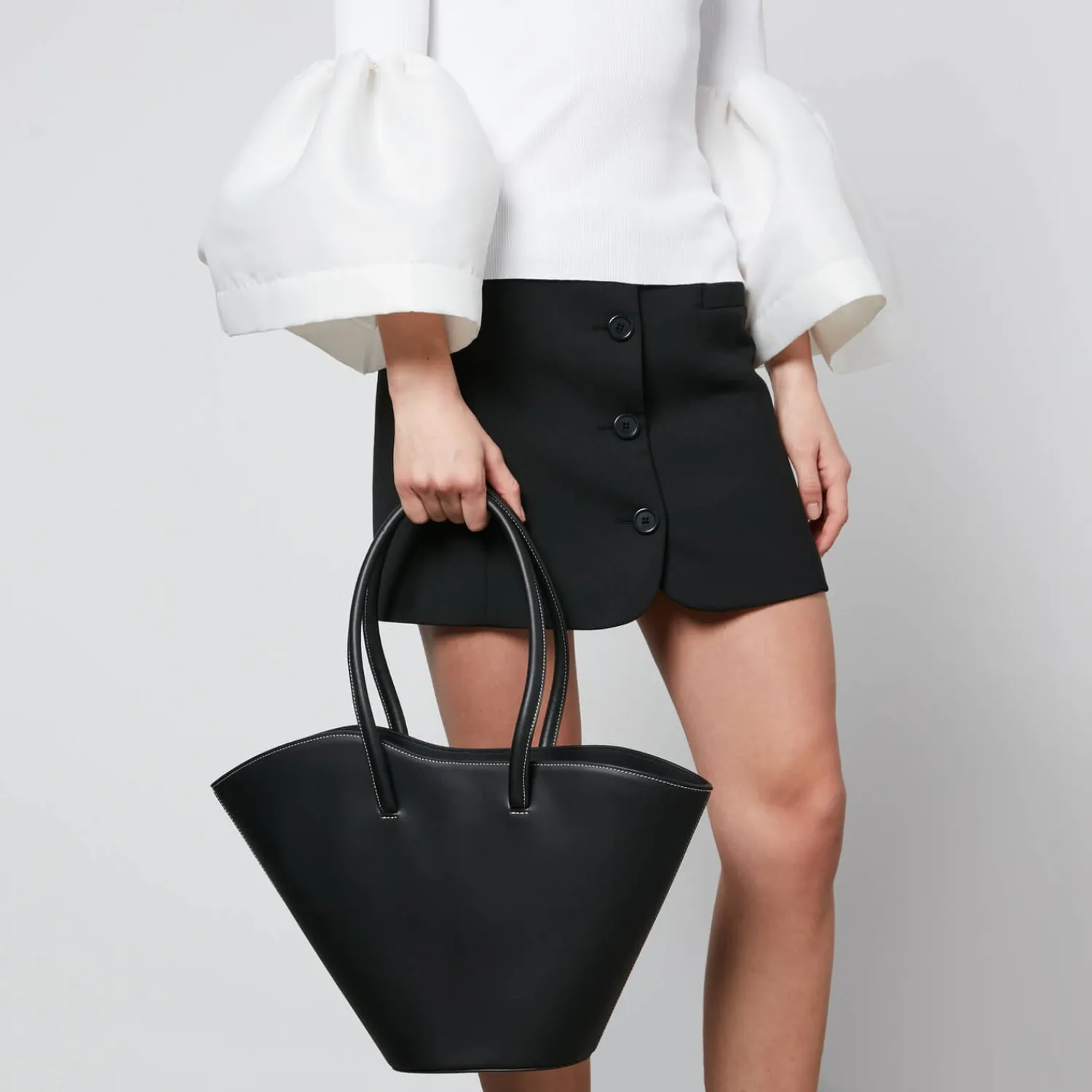 Little Liffner’S Tall Tulip Tote Bag Showcases The Stockholm-Based Brand’S Penchant For Playful Minimalism. Crafted From Supple Black Leather With A Smooth Matte Finish It Styles An Elegant Tulip-Inspired Design That Contours Delicately Under Your Arm. Fastening With A Neat Snap Closure It Boasts A Spacious Lined Interior.