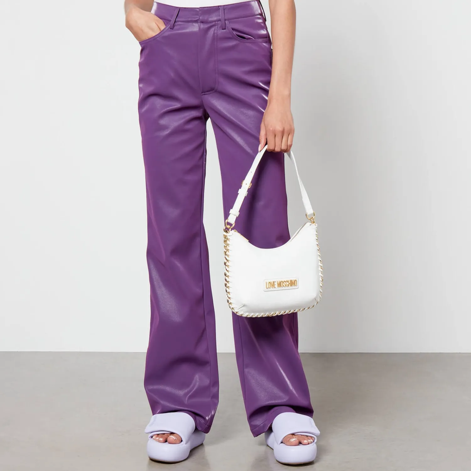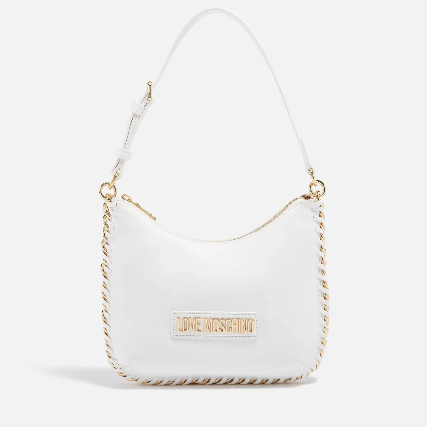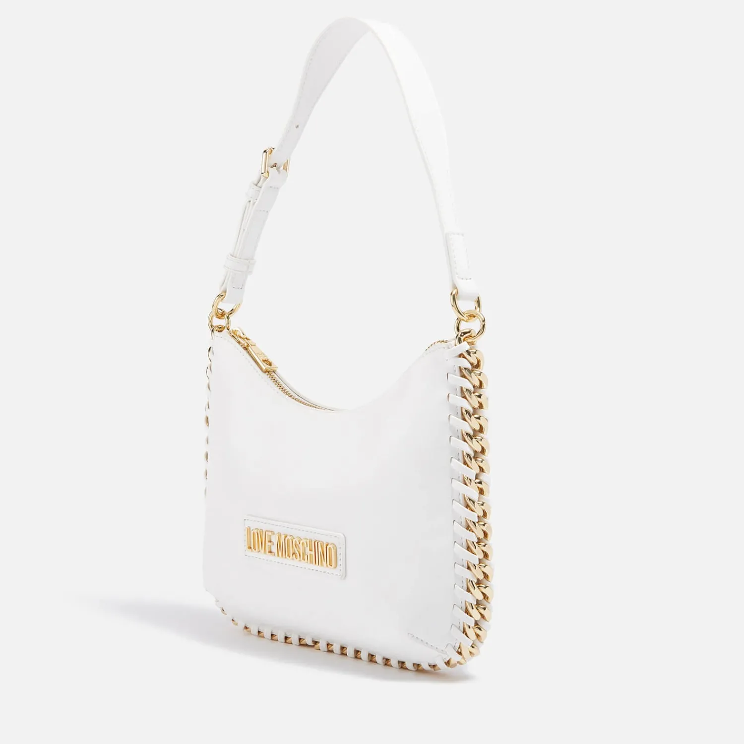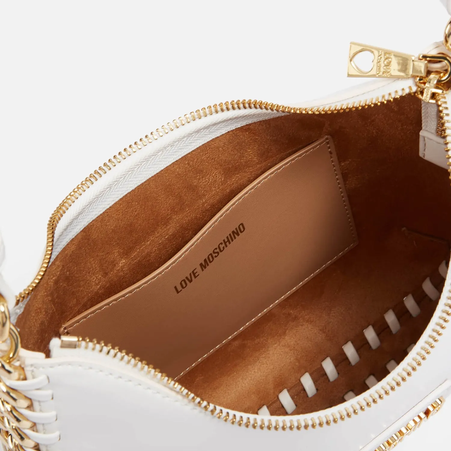Love Moschino Macro Chain BagWhite Faux LeatherAdjustable Top Handle, Designer LogoZip Closure