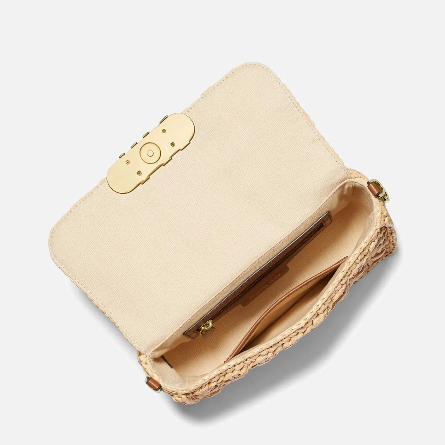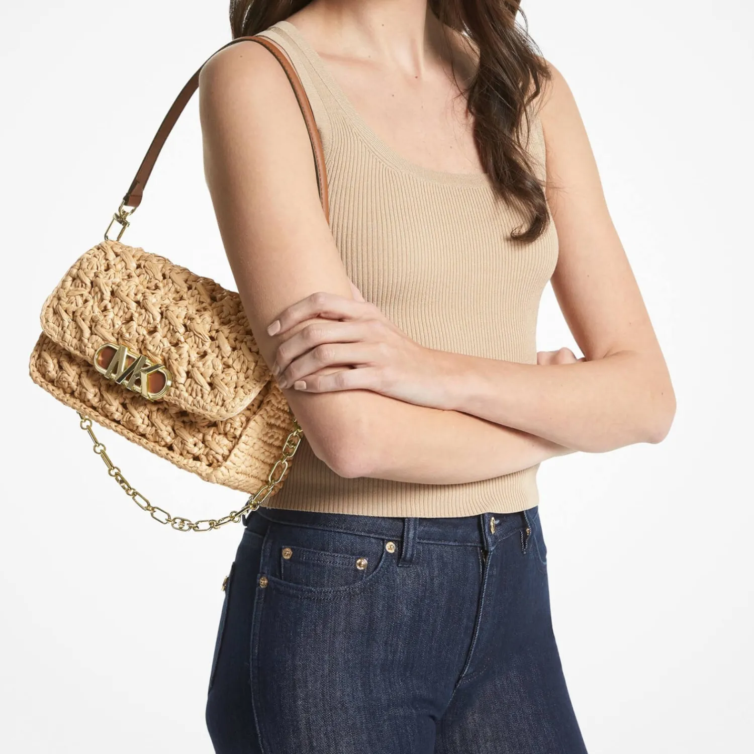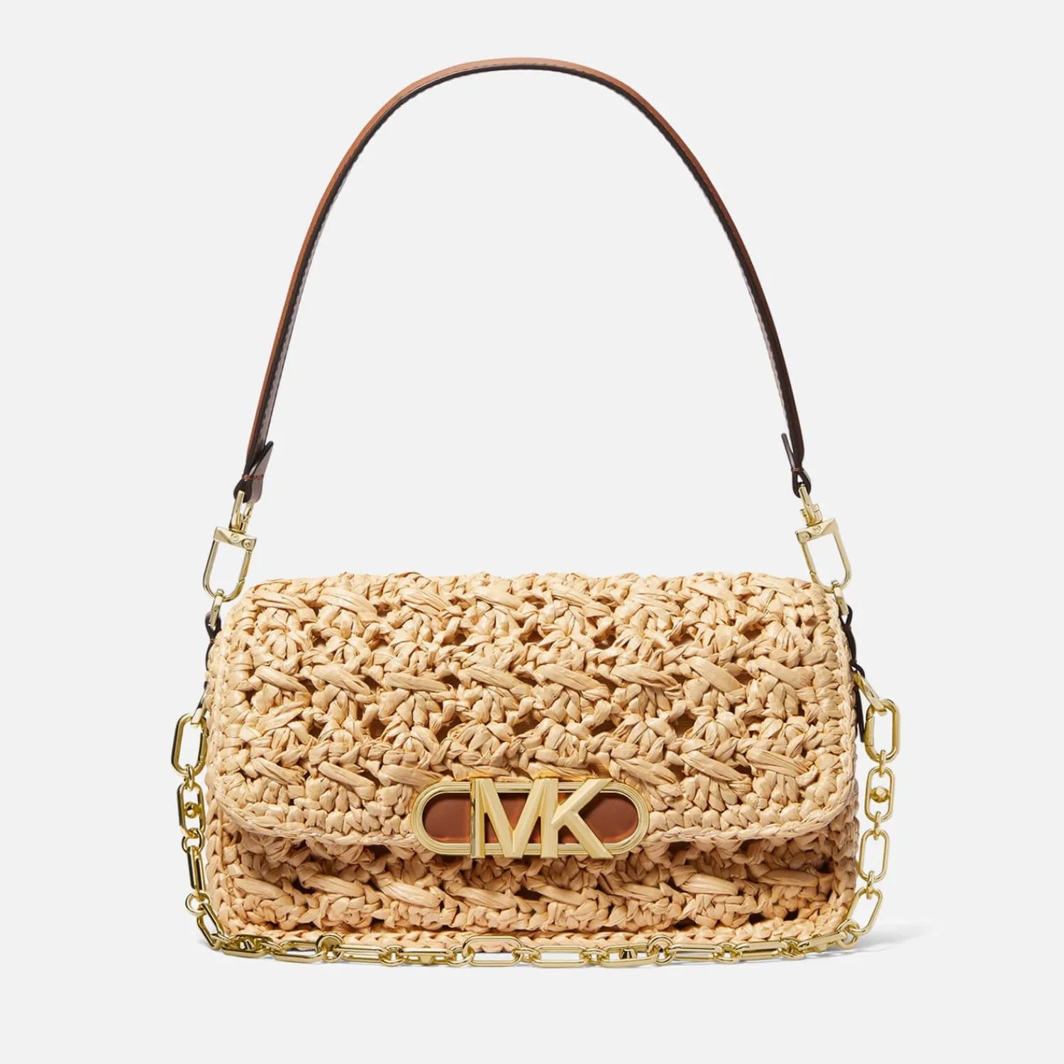 Michael Michael Kors Parker Shoulder BagNatural RattanDesigner Plaque, Chain Shoulder Strap, Detachable Adjustable Strap…