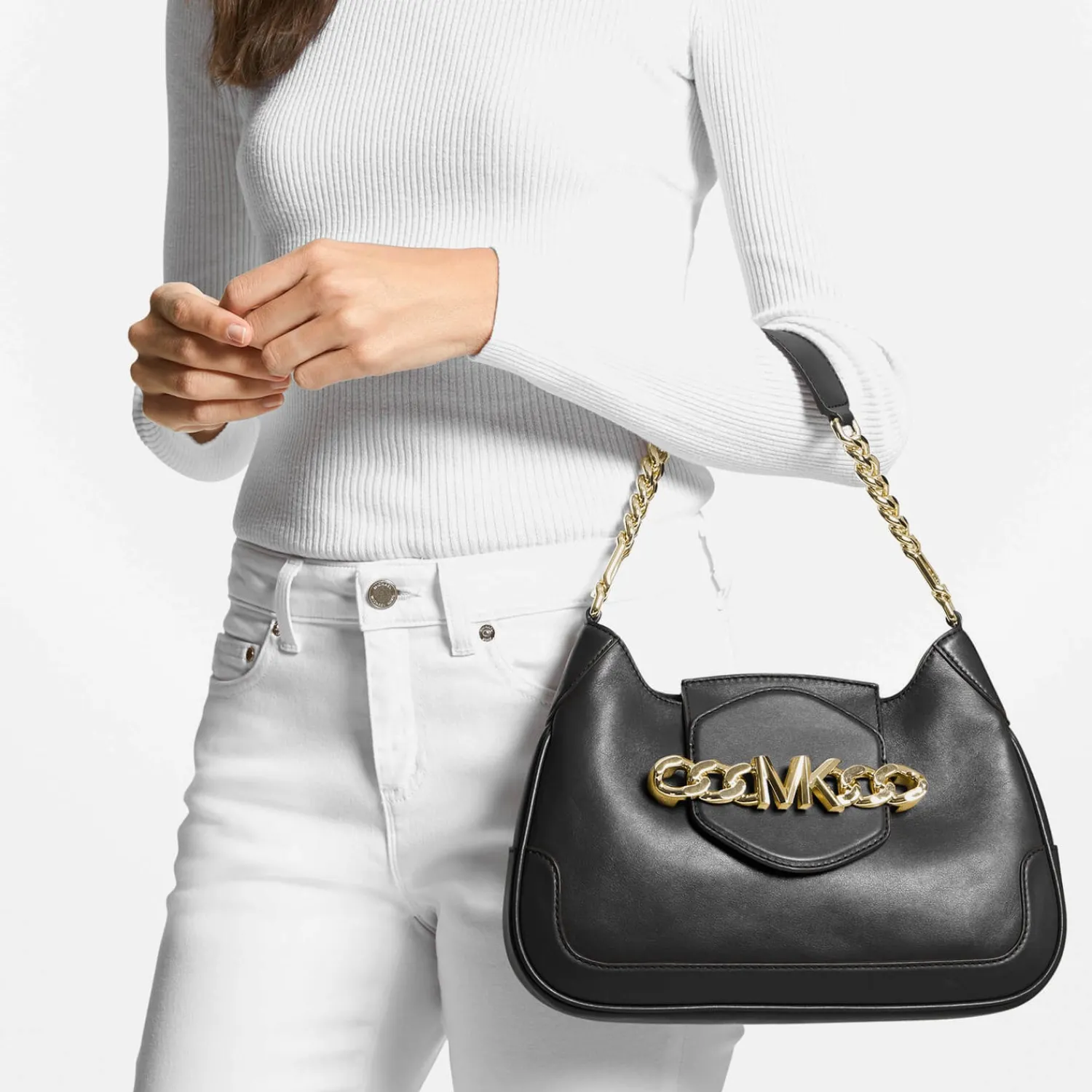 The Michael Michael Kors Hally Shoulder Bag Serves As The Perfect Statement Daytime Accessory. Flaunting The Label’S Monogram In Gold-Toned Hardware This Fold-Over Bag Contains A Large Compartment For Daily Essentials And An Extra Two Compartments So You Can Access Your Small Valuables Whilst On The Go With Ease.